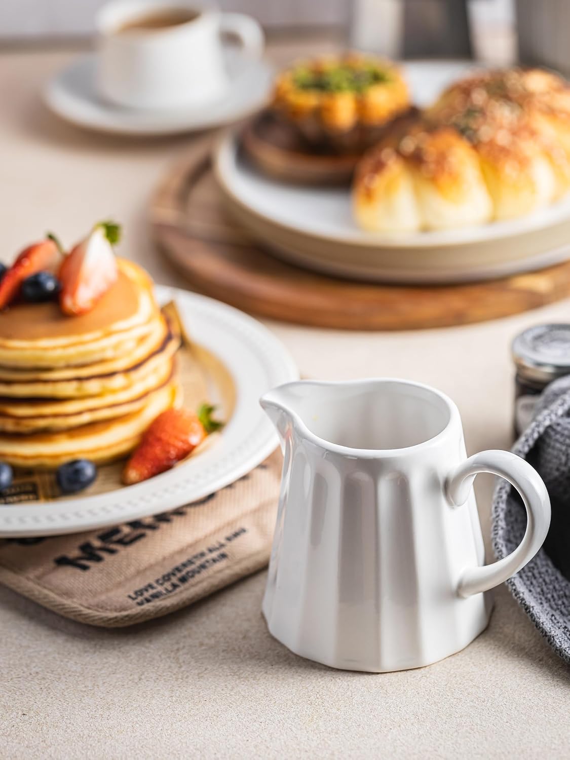 - Elegant Ceramic Creamer Pitcher: 10 oz capacity, ideal for serving milk, cream, sauces, or heating maple syrup for pancakes and milk for coffee. Compact yet practical for daily use