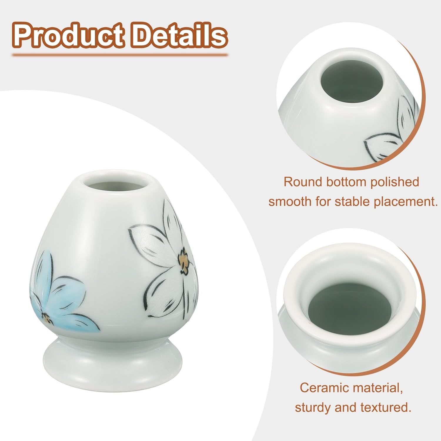 - Material - The tea whisk holder is made of ceramic, which is sturdy and textured, keeps it clean, and extends the life of the tea whisk. It adopts a simple design style, and the bottom is polished smoothly and finely, aiming to provide a stable and convenient support platform for placing the tea whisk.