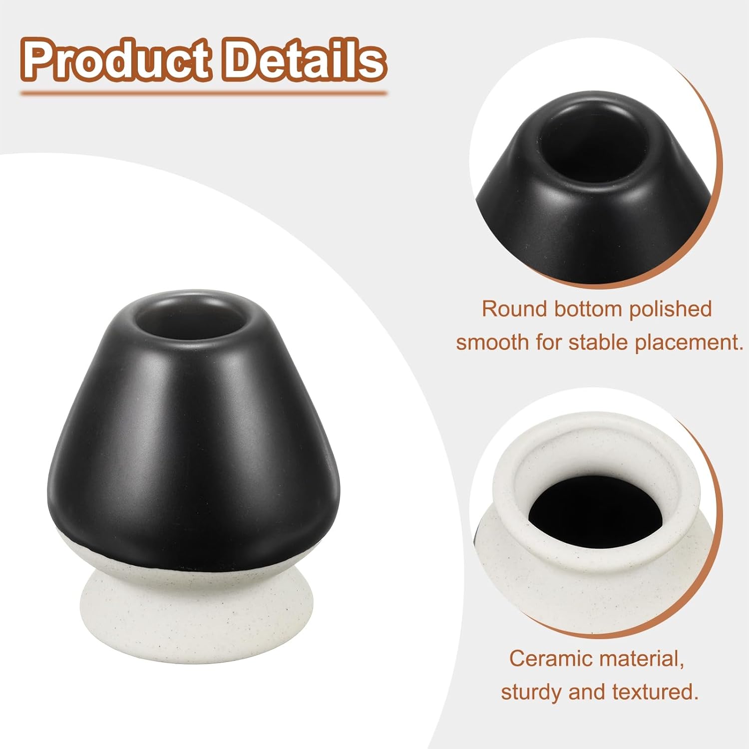 HARFINGTON Ceramic Chasen Stand 70mm Matcha Whisk Holder Teas Set Whisks Stand Traditional Matcha Tea Chasen Holder Tea Set Accessories for Tea Tasting, Beige/Black