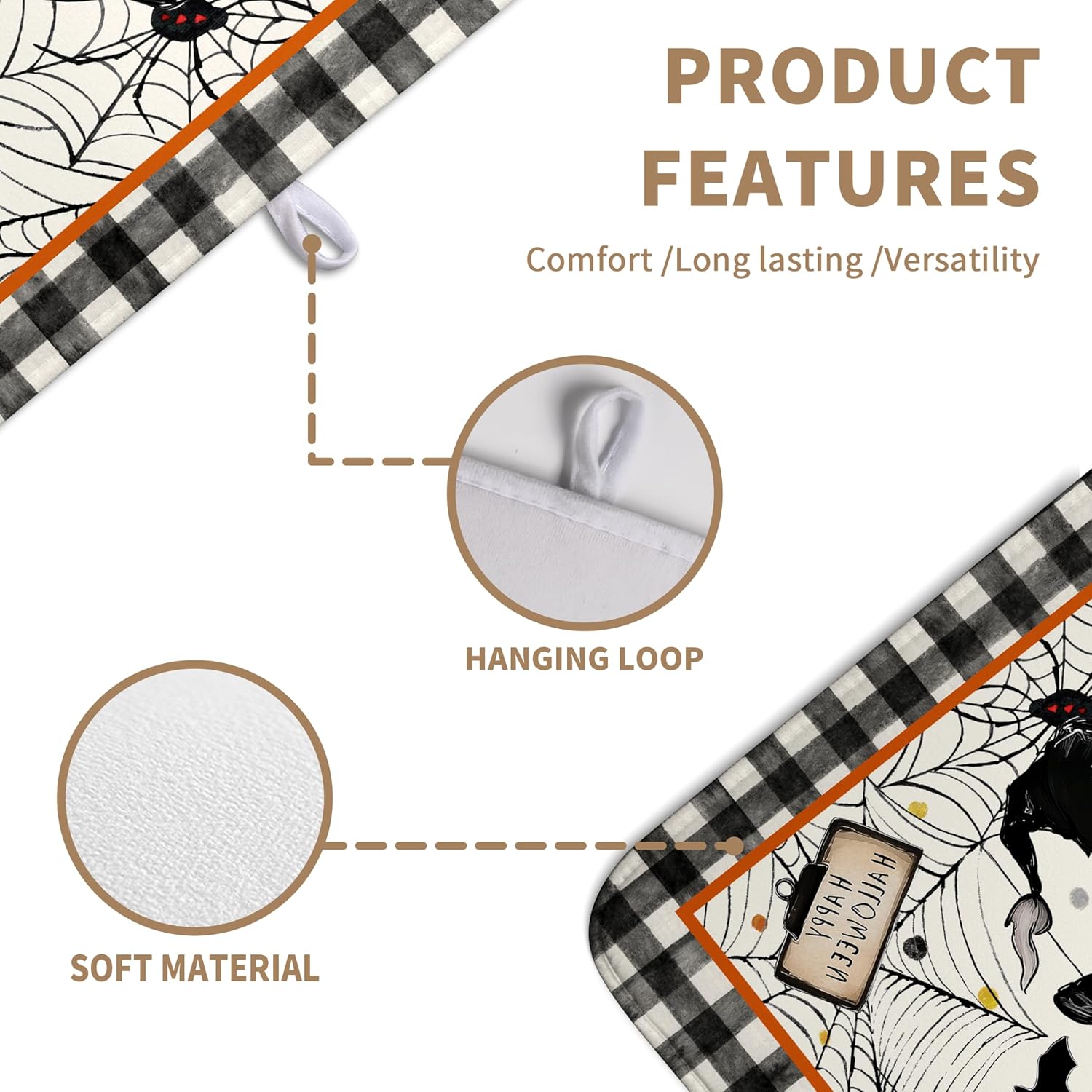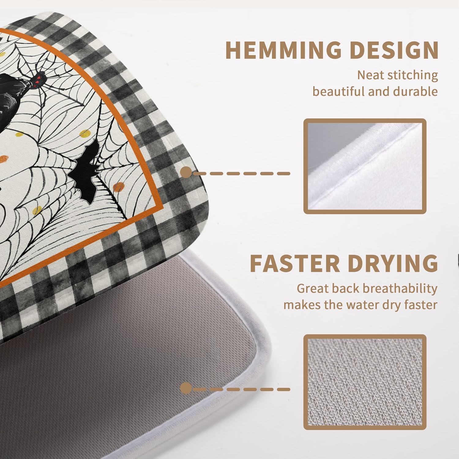 - [Space Saving]: This Halloween Buffalo Plaid Large lightweight absorbent dish drying mat has a webbing lanyard in the middle of the horizontal side for hanging, and floral large drying mat for kitchen counter Halloween dish drying matt kitchen counter can also be folded and thrown into a drawer or stuffed elsewhere.