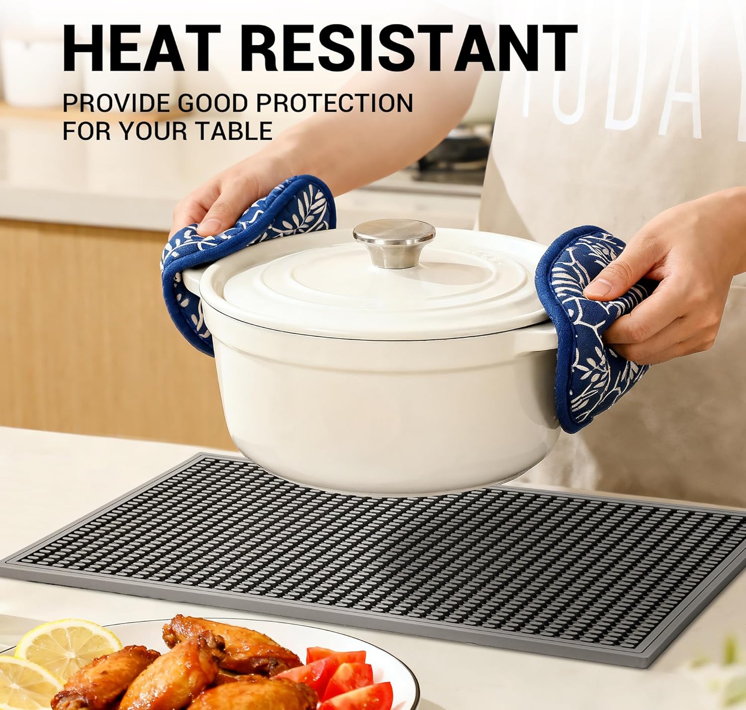 - Multi-Functional & Space-Saving: More than just a dish drying mat, it doubles as a trivet, hot pad, spoon rest, or even a sink liner. The flexible silicone drying mat for kitchen counter rolls or folds for compact storage, making it perfect for small kitchens, RVs, or commercial use. A must-have for clutter-free countertops!