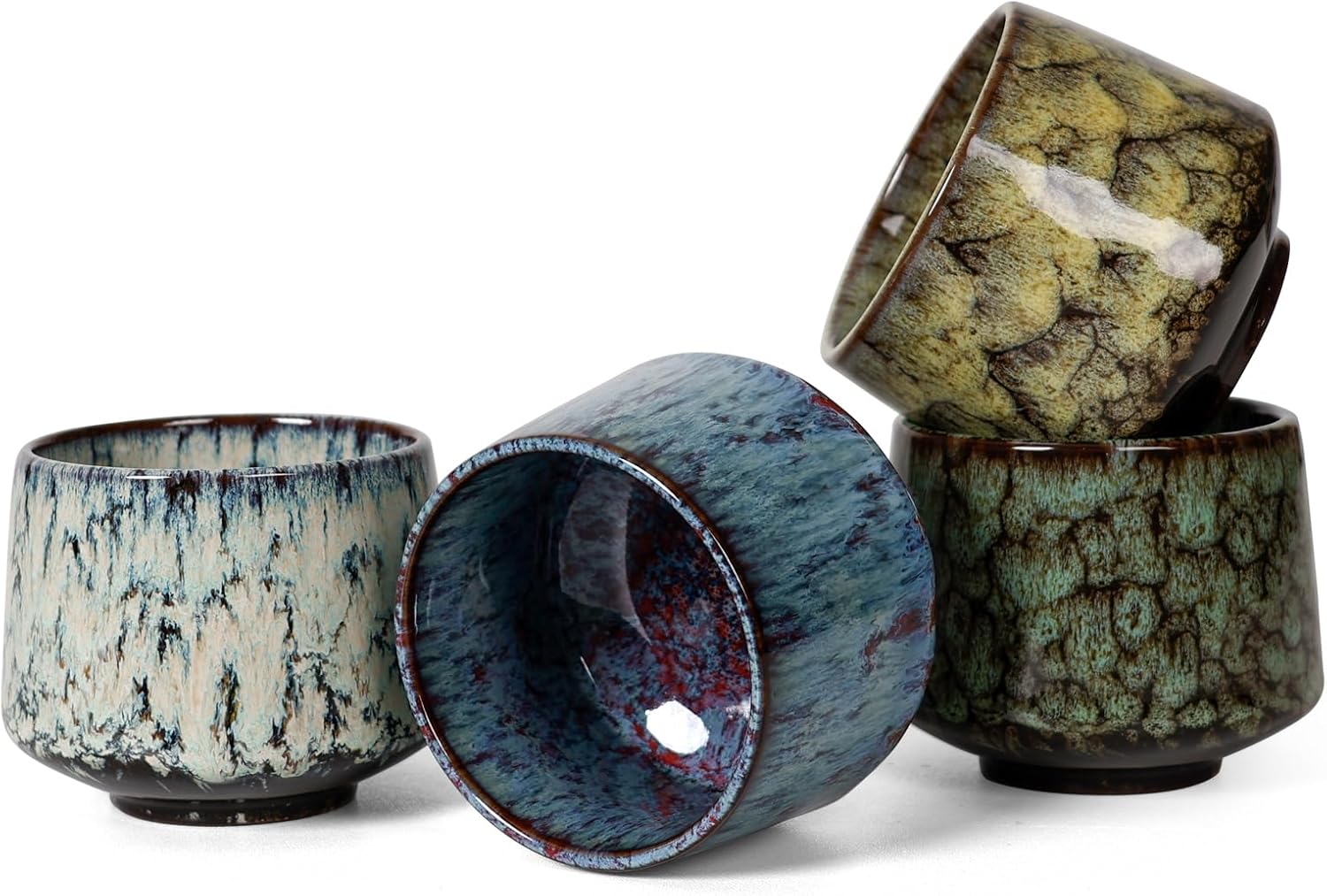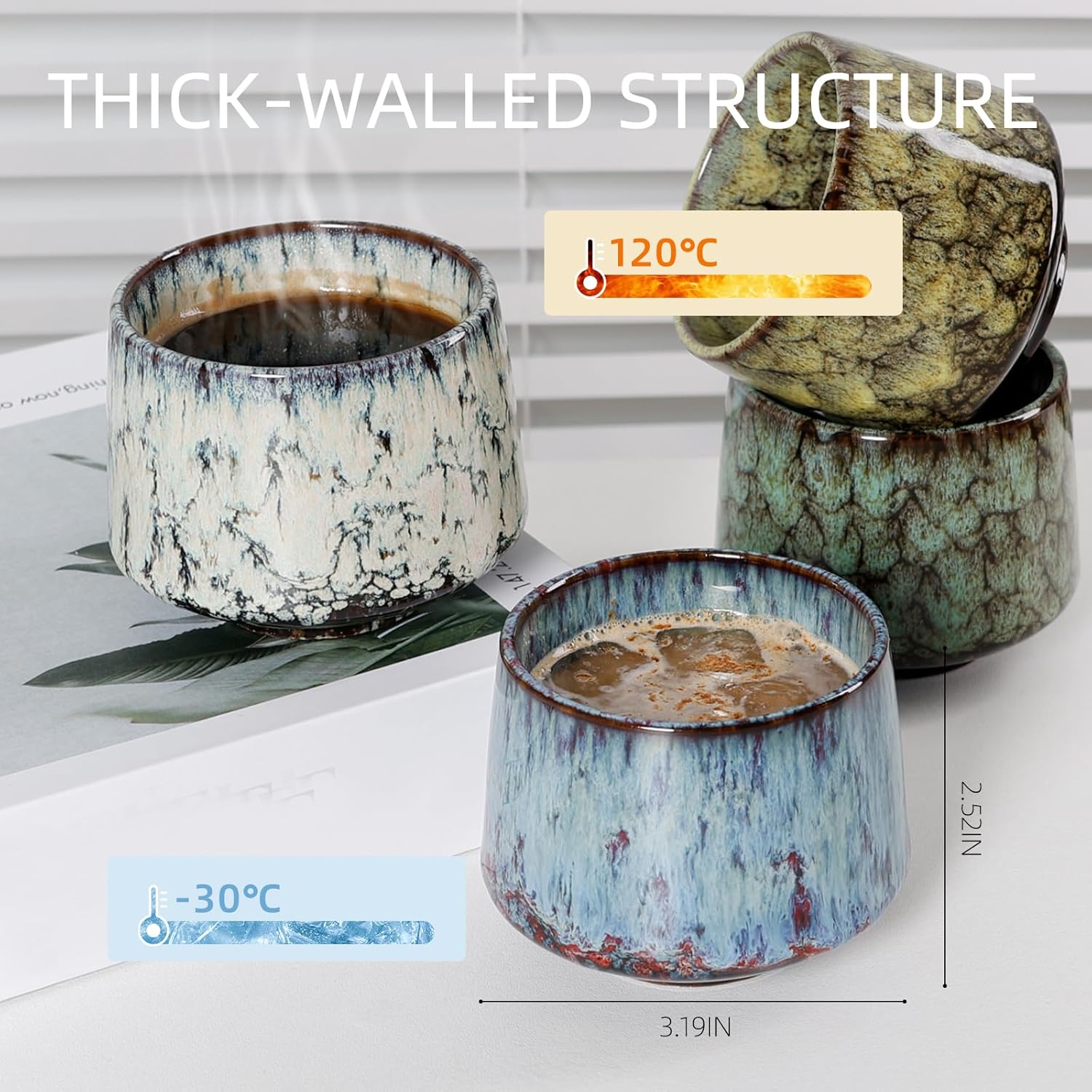 Ceramic Espresso Cups Set of 4, Espresso Coffee Mugs, Special Glazed Demitasse Cups Expresso Coffee Cup for Espresso Machine