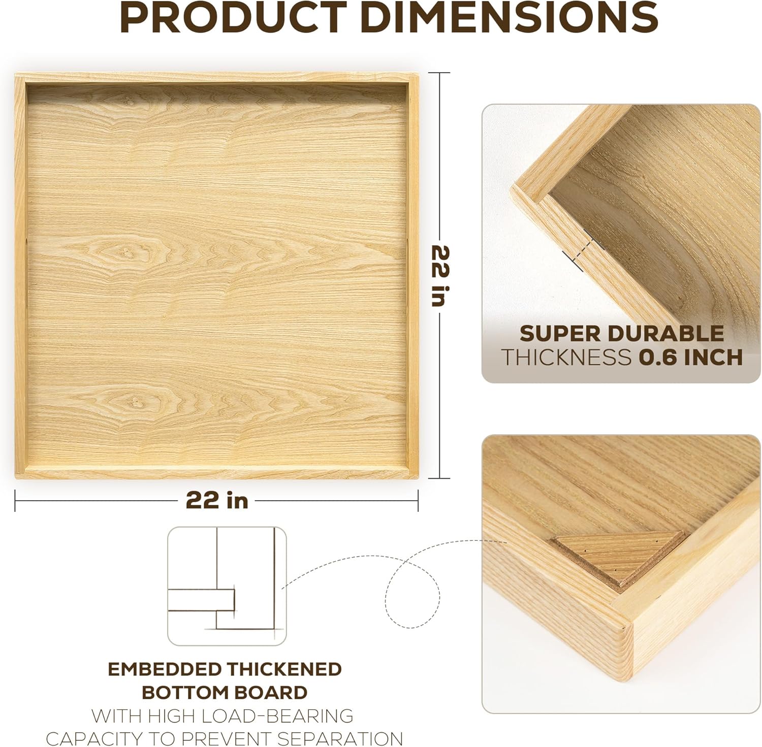 Axeman 22 Inch Large Square Wooden Ottoman Tray for Living Room|Extra Large Serving Tray with Handles for Coffee Table, Breakfast|Decorative Wood Tray for Ottoman Couch Sofa Kitchen|Natural
