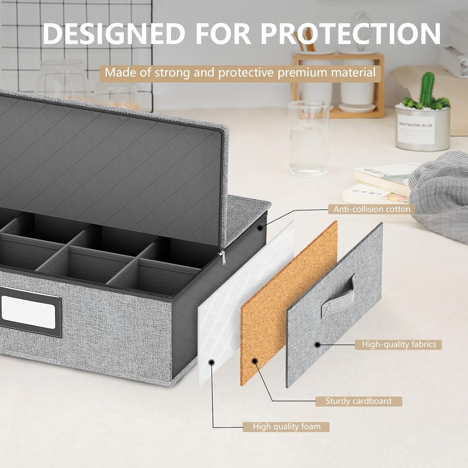 homyfort Coffee Mug Storage Box with Dividers, Durable China Storage Containers for Coffee Mugs, Tea Cups Storage Organizer with Lid, Handles, Label Window, Holds 24 Mugs, Hard Shell and Stackable