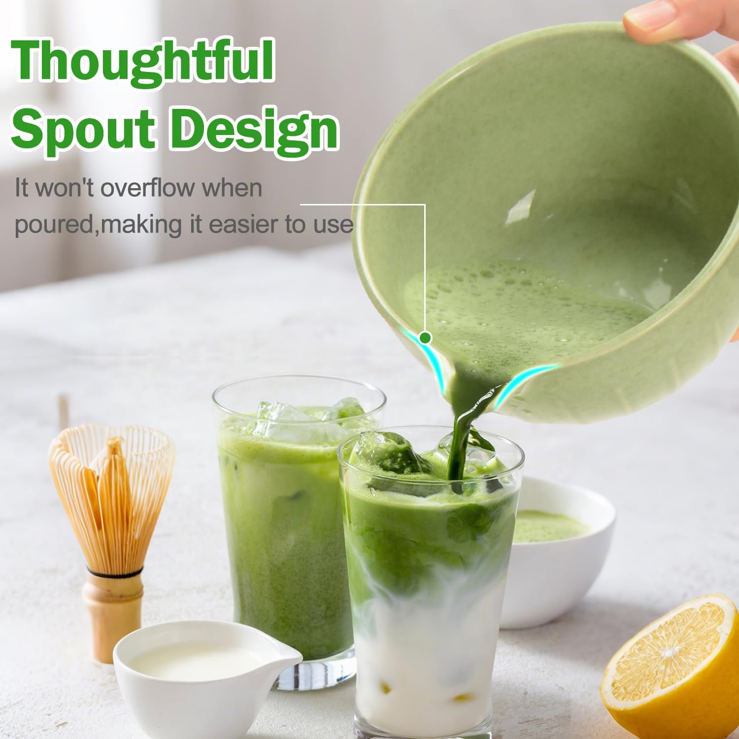 MONOJOY Matcha Whisk Set Ceramic Bowl Kit with Spout, Bamboo Chasen and Holder, Scoop Rest,Sifter Tea Towel Ceremonial Cute Matcha Tea Making Tool,Gift Perfect for Latte Lovers | Beginners,7pcs