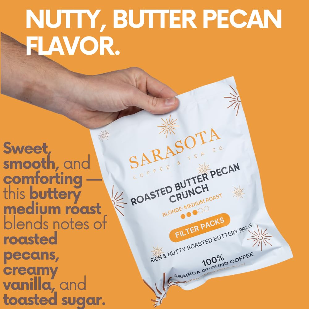 - FAMILY-RUN & CUSTOMER-FOCUSED: Roasted and packed in Sarasota, Florida by our family-owned coffee company. If you don't love this Butter Pecan Crunch filter coffee, we’ll refund your order—no questions asked.