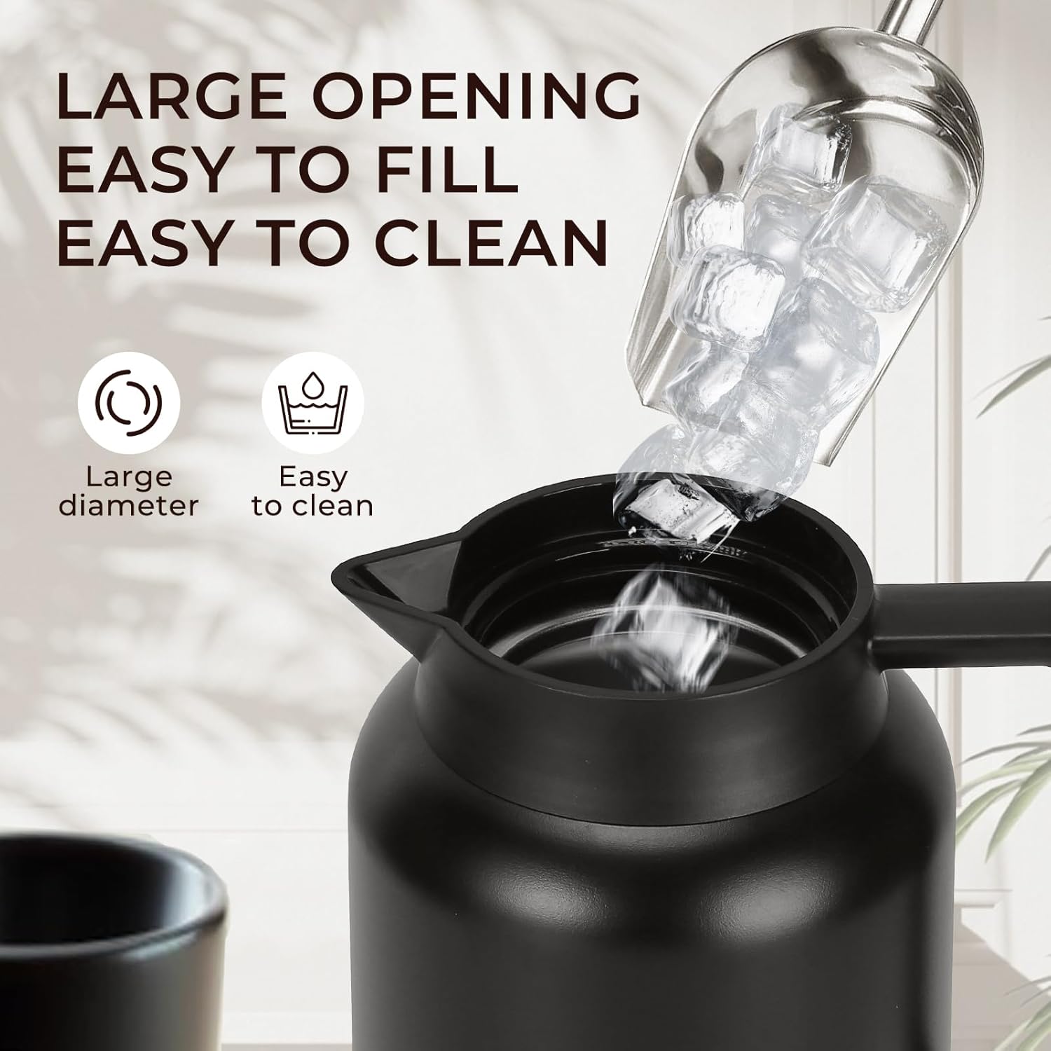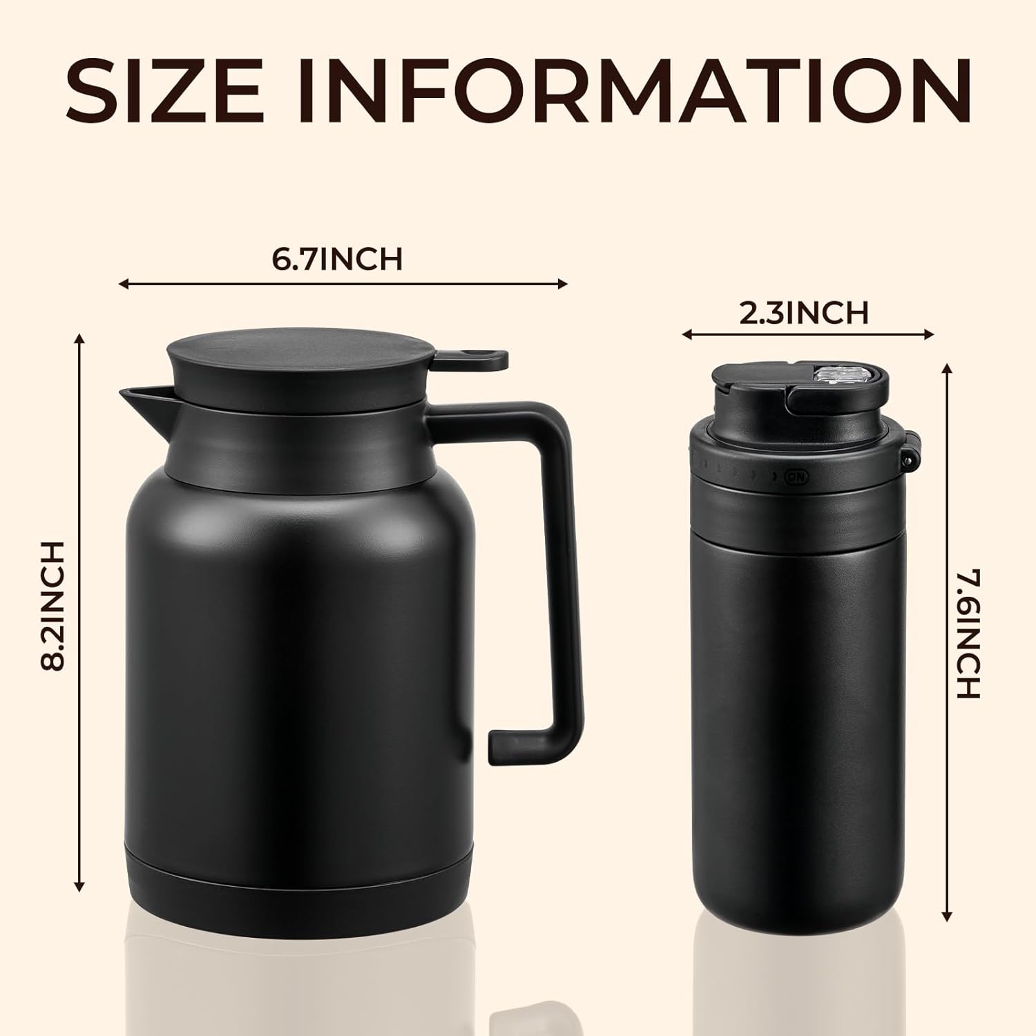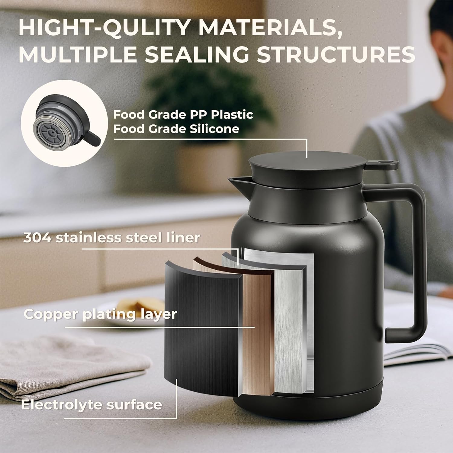 - 【LEAK PROOF】Both feature leak-proof lids. Our coffee carafe lid with food safe silicone ring, which is leak proof and always locks into place when closing your pitcher.Effectively prevent water leaking.Even with a slight tilt our thermal coffee carafe will not leak one single drip.