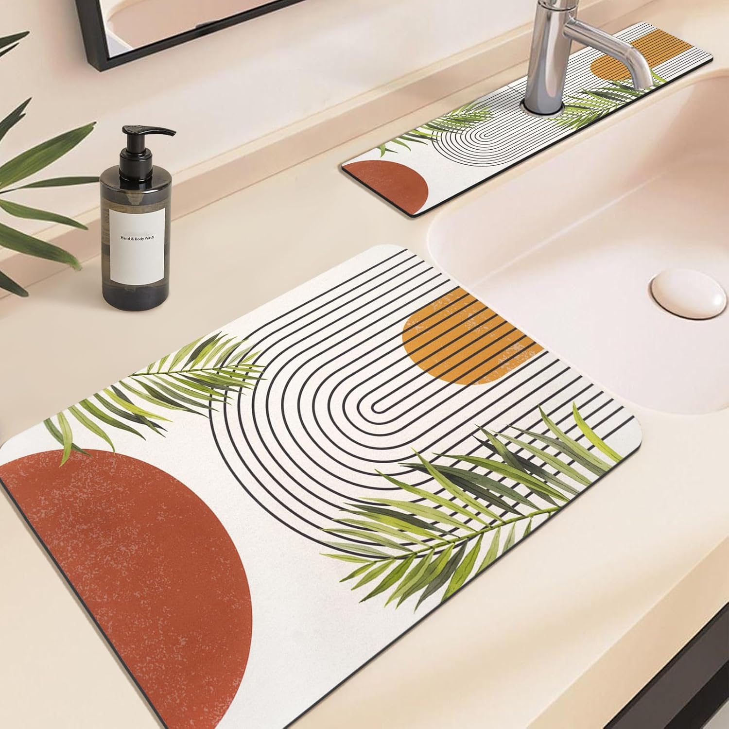 - 【Bohemian-inspired】Elevate your space with our kitchen drying mat featuring exclusive designer patterns. Each artfully crafted dish mat serves dual purposes - exceptional functionality meets modern aesthetics, perfect for complementing kitchen decor or enhancing coffee bars and workspaces