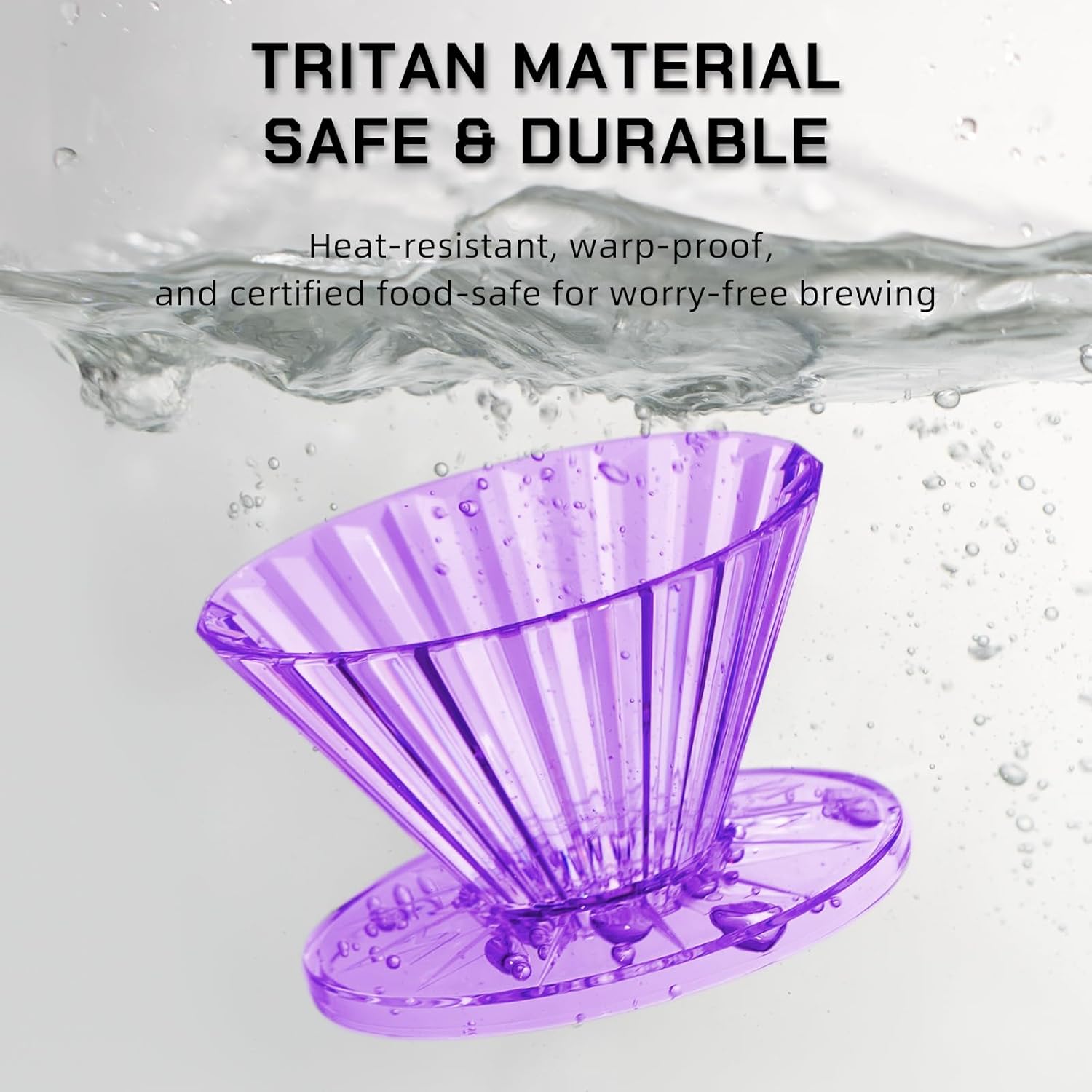 MAVO Pour Over Coffee Dripper, Detachable Hand Drip Brewer, Pour Over Coffee Maker, Compatible with V01 Paper Filters & Wave Filter 155, Purple