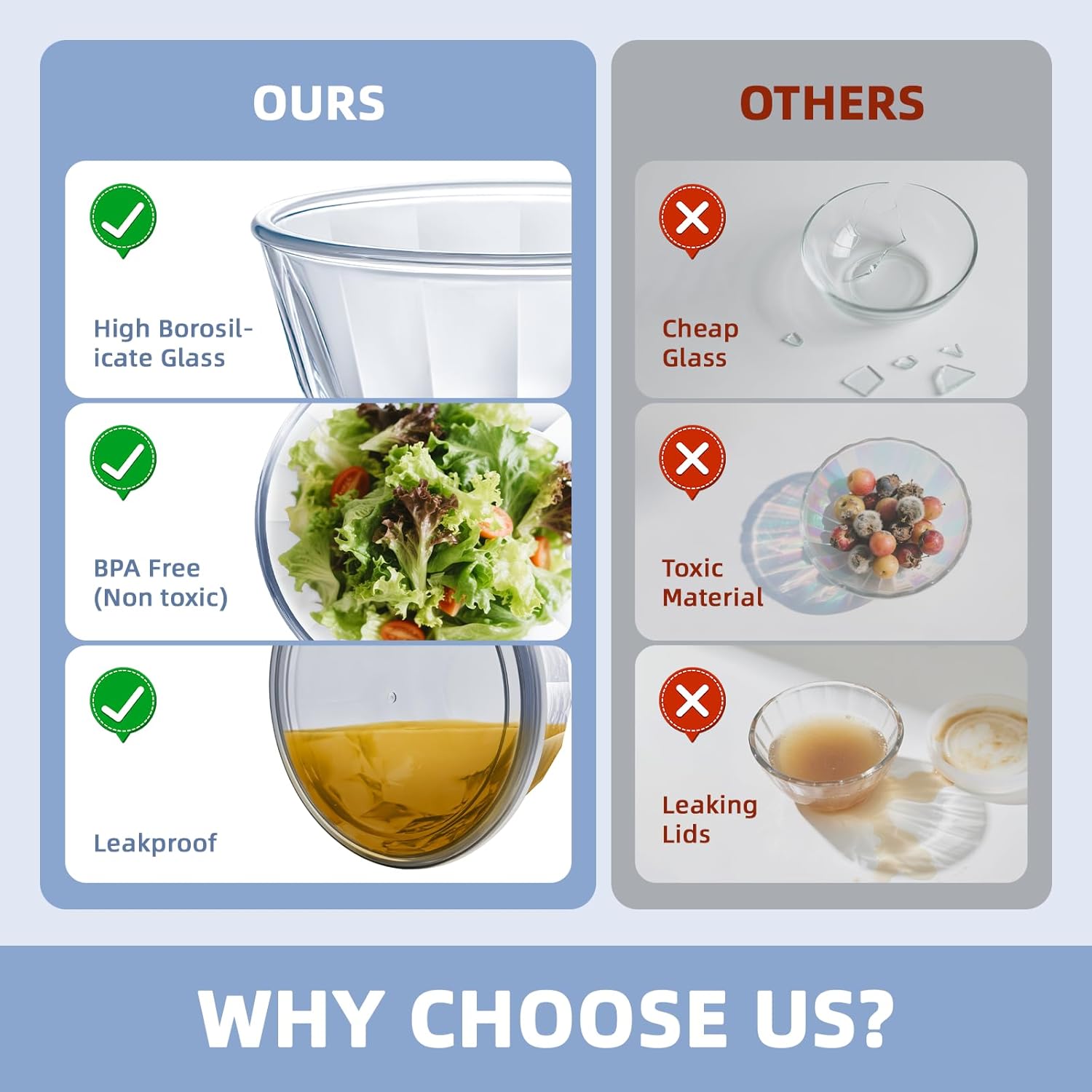 - 【Premium Food Grade Material】Bowls are made of high borosilicate material,thicker glass bowls, longer life span, lead & cadmium free, and tolerates -4℉-1040℉ (-20℃-560℃), access to microwave, oven, fridge, dishwasher. The lid is BPA free, safe and reliable, easy to clean