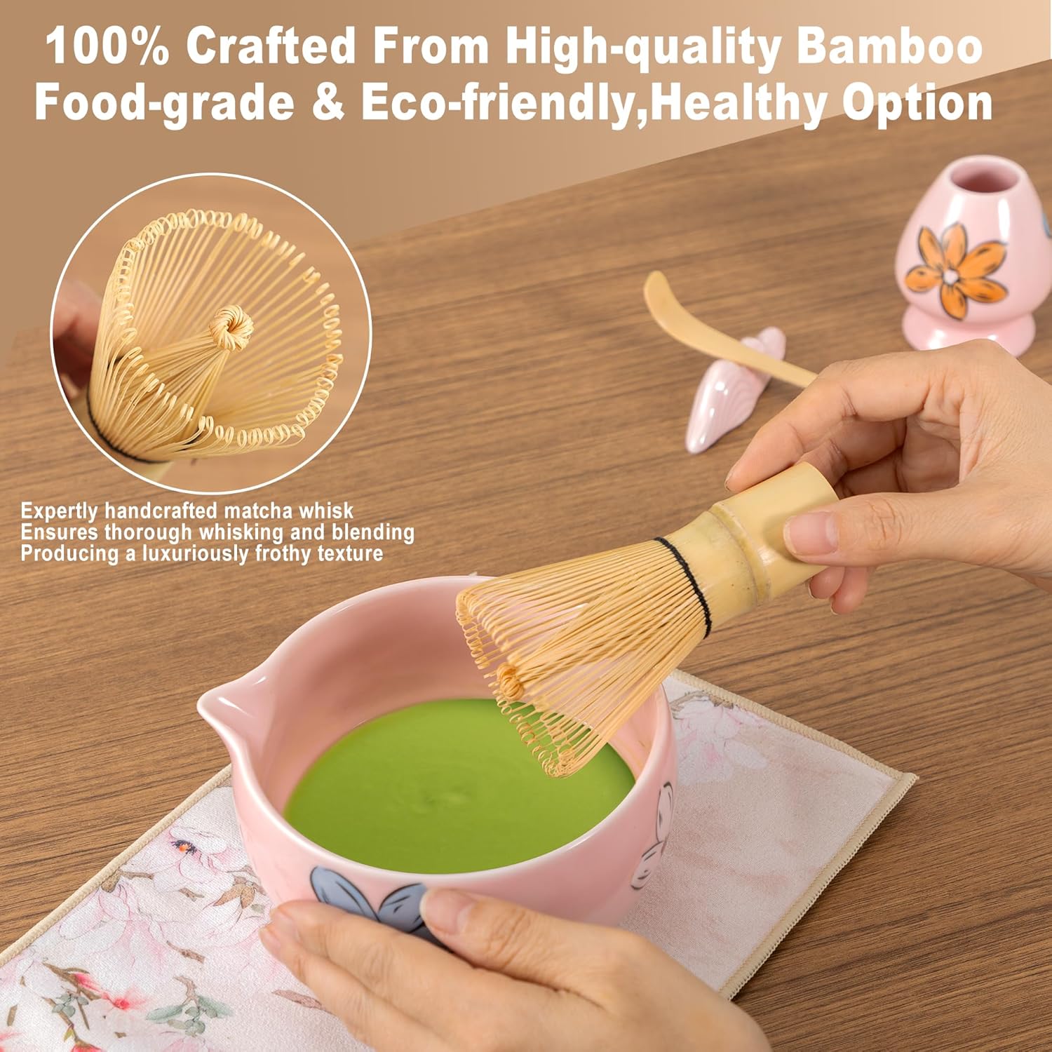 - 【★Authentic Taste of Matcha】Handcrafted from natural,renewable bamboo,featuring around 76 delicate tines,our matcha whisk are finished with a protective vegetable oil coating for enhanced durability and easy cleaning.Precision-engineered design ensures thorough whisking and blending,producing a luxuriously frothy texture for a velvety smooth matcha experience.Savor the artistry of tea with every silky, airy sip.