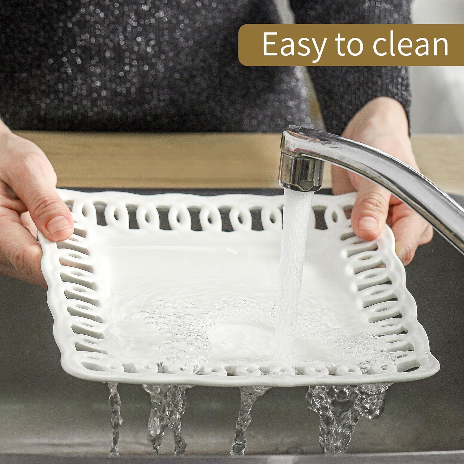 - Creative Gift: fMBB elegant white square ceramic plates with Joy to your families and guests on dinner parties or weeknight meals; A super ideal choice as serving plates for birthday party, housewarming, wedding shower and more holiday plates; Great idea as Christmas plates and thankful plates or home decor