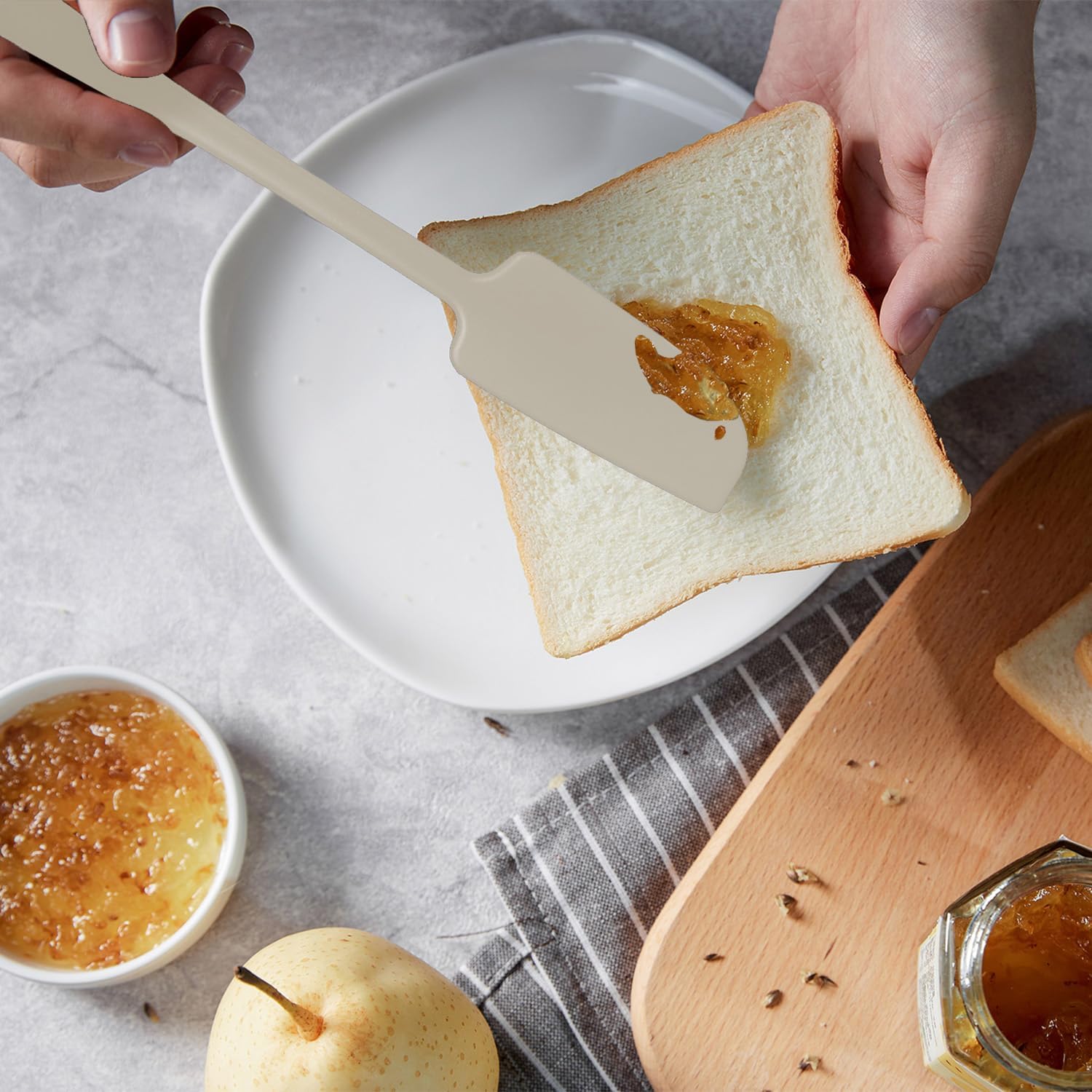 2-Pack Vovoly Silicone Jar Spatulas, Small Seamless Design Rubber Scraper with Stainless Steel Core, Heat Resistant and Non-Stick Mini Spatula for Jars and Blenders, BPA Free,11 IN, Khaki