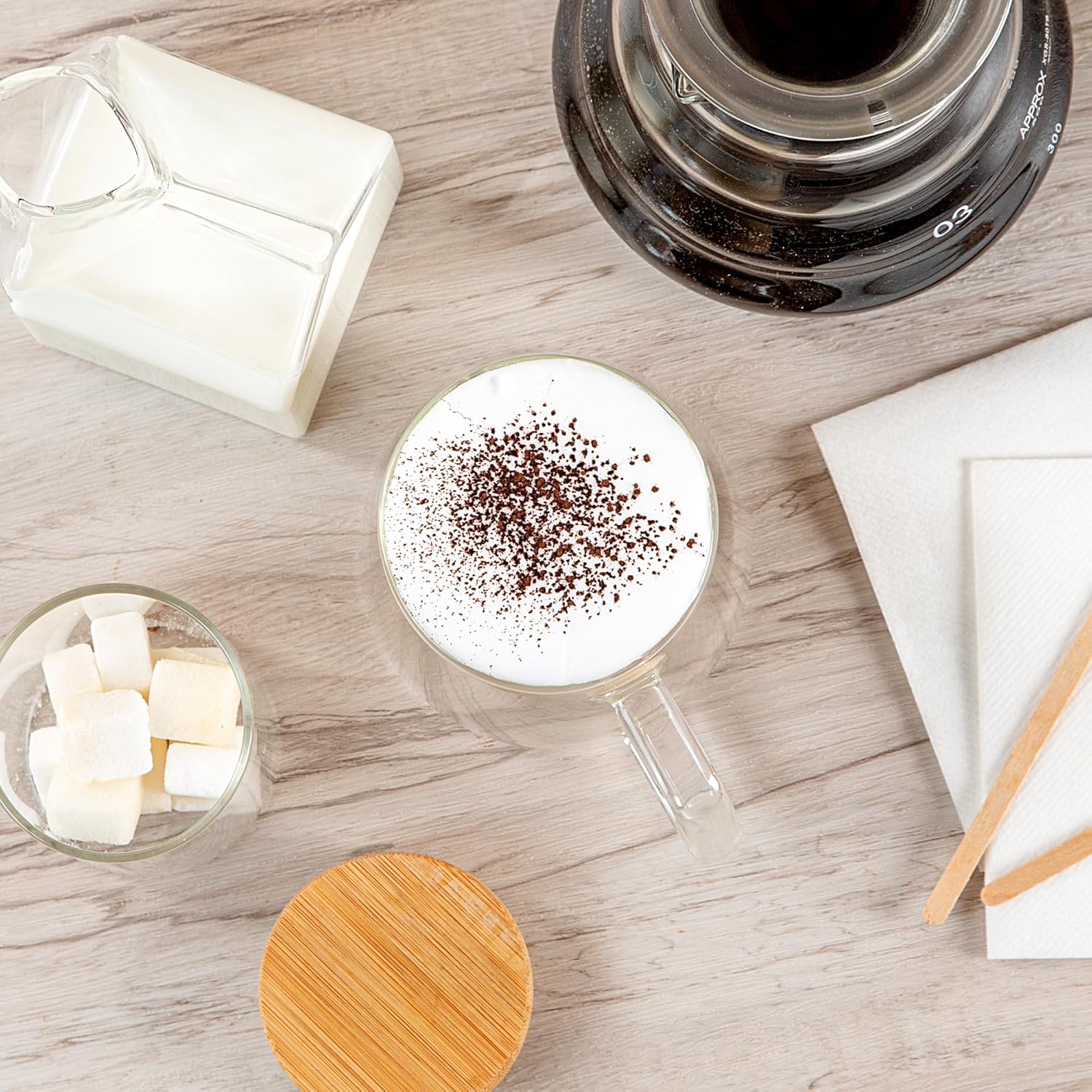 - ROBUST BOROSILICATE GLASS: Made from strong borosilicate glass, these clear coffee mugs with handle defy scratches and breaks, ensuring long-lasting performance. Handle for a comfortable grip!