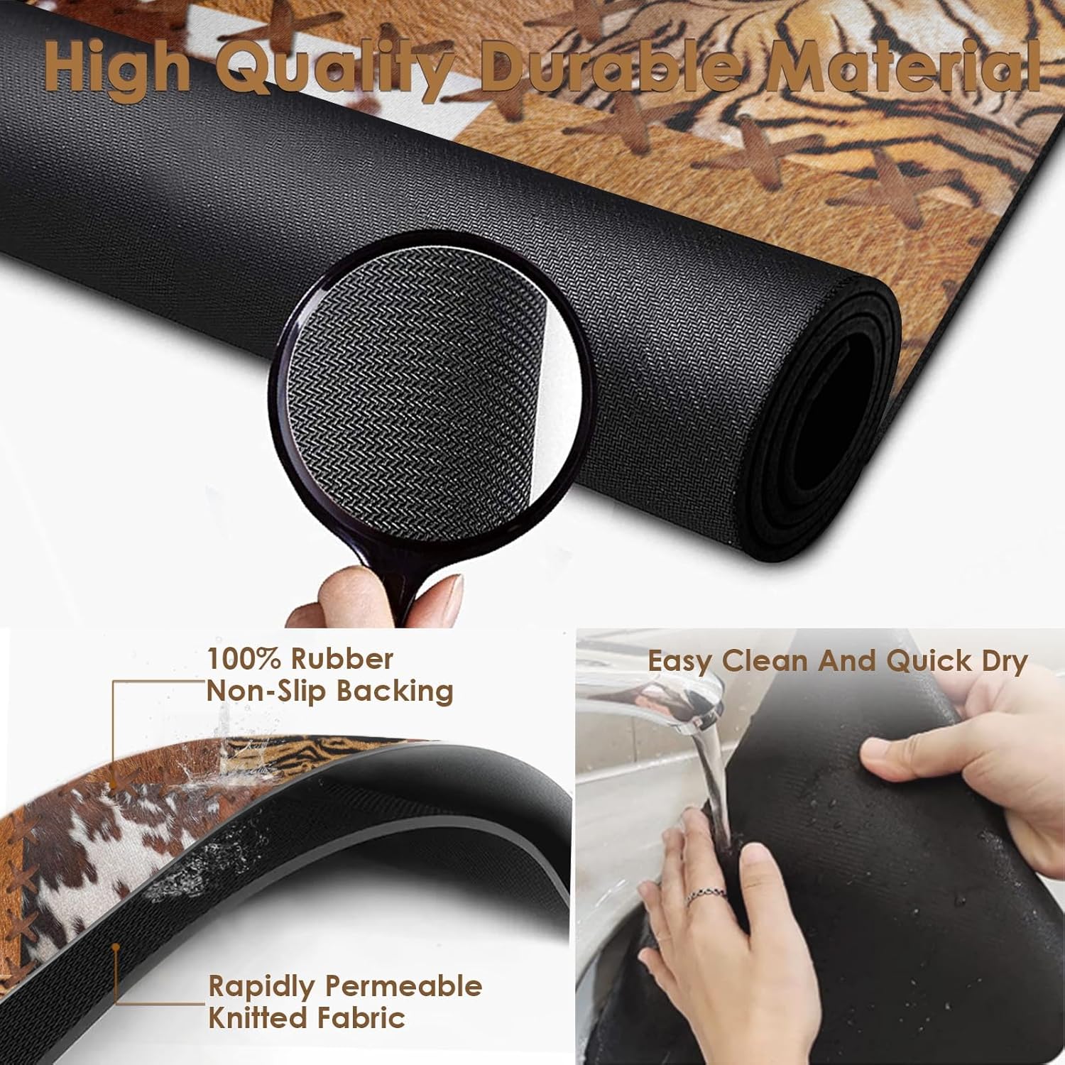 Arttown Coffee Mat for Countertops, Cow Tiger Leopard Patchwork Tribal Art Dish Drying Mat 2 Pcs for Kitchen Bar Accessories, Coffee Maker Espresso Machine Dish Rack Hide Stain Rubber 12x19in