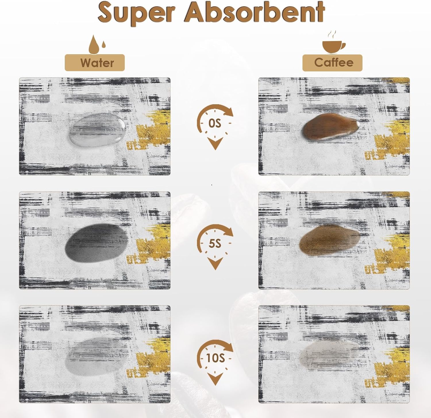 - [Super Absorbent] The coffee mats is reliable to absorb water quickly, no matter splashing coffee, or scattered water droplets, all gone real quick, the high density design makes air dry in seconds, and always keeps the table clean and tidy. It is one of practical and trustworthy coffee bar accessories.
