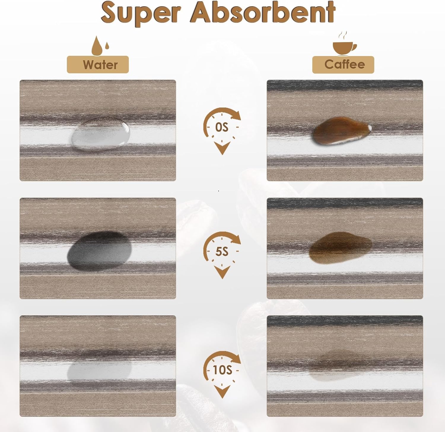 - [Super Absorbent] The coffee mats is reliable to absorb water quickly, no matter splashing coffee, or scattered water droplets, all gone real quick, the high density design makes air dry in seconds, and always keeps the table clean and tidy. It is one of practical and trustworthy coffee bar accessories.