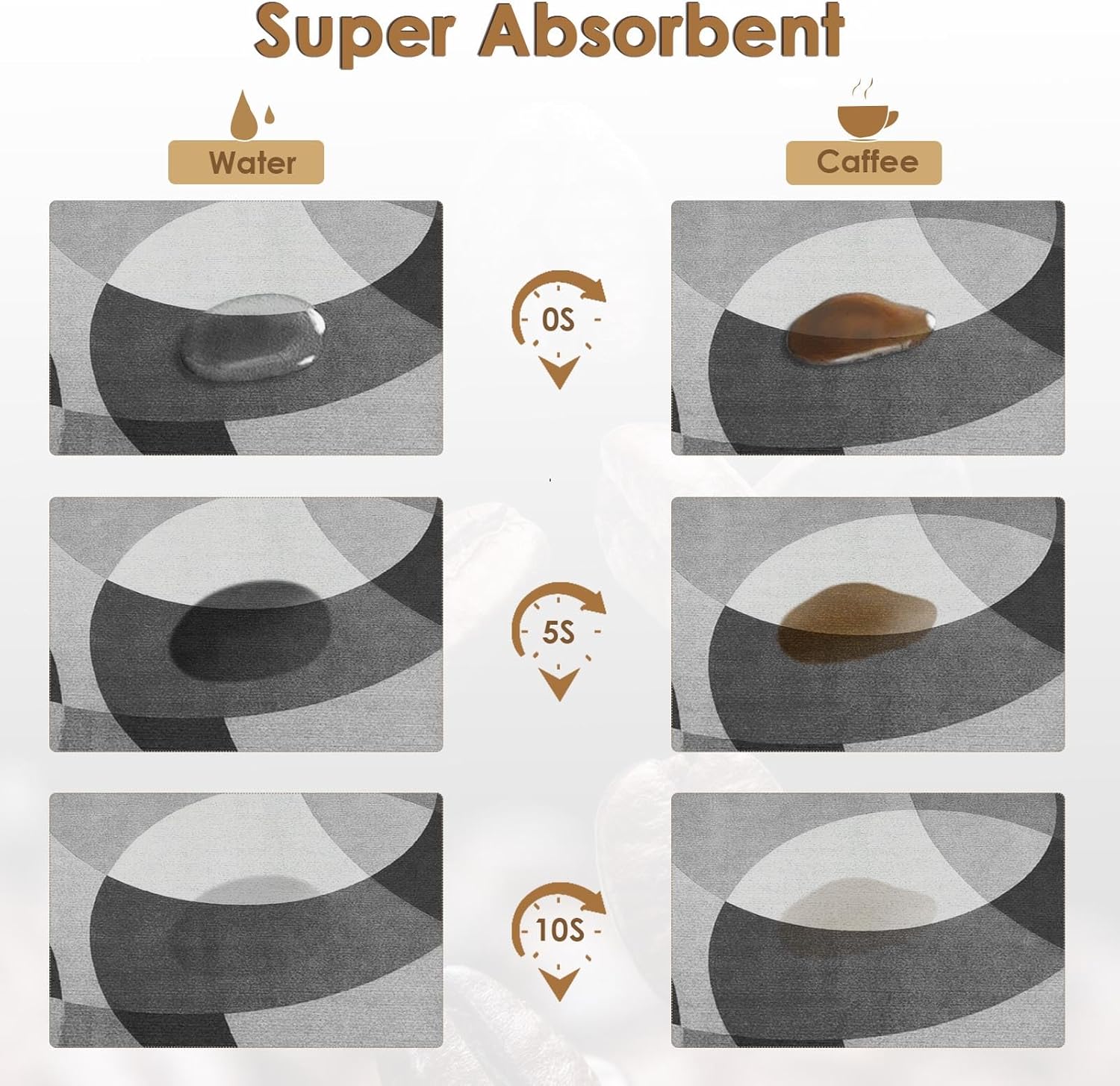 - [Super Absorbent] The coffee mats is reliable to absorb water quickly, no matter splashing coffee, or scattered water droplets, all gone real quick, the high density design makes air dry in seconds, and always keeps the table clean and tidy. It is one of practical and trustworthy coffee bar accessories.