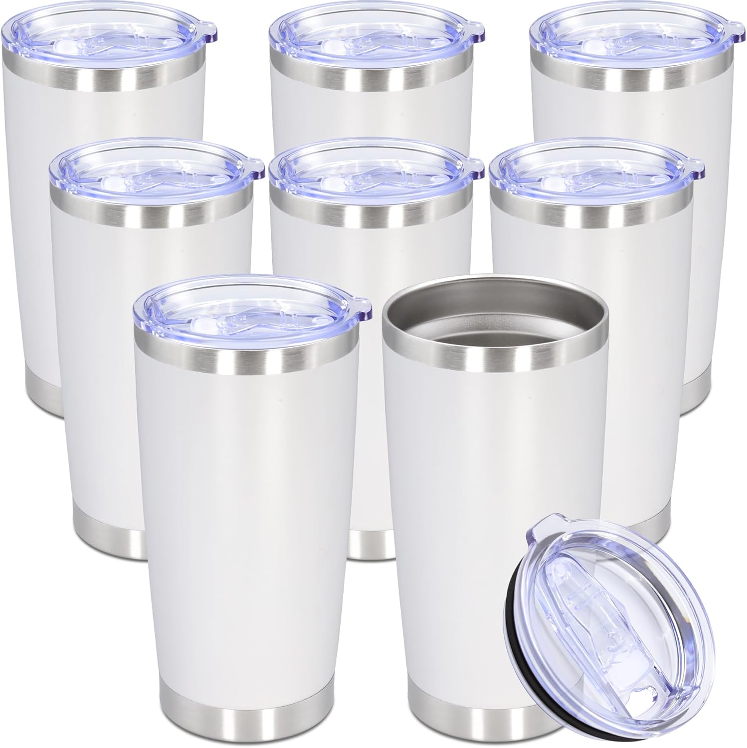 20oz Tumbler Bulk Stainless Steel Tumbler Cup with Lid Vacuum Insulated Double Wall Travel Mug, Durable Powder Coated Travel Coffee Tumbler Mug for Hot & Cold Drinks, White,8 Pack