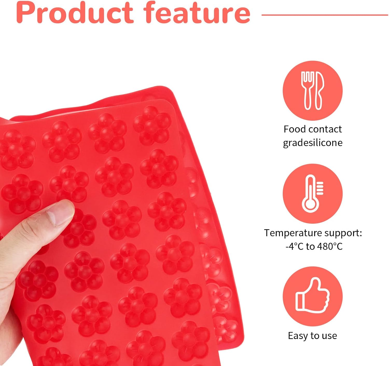 - Everything’s Easy: Professional non-stick chocolate molds with easy baking, demolding, and cleaning. Each mold includes a food-grade scraper. No butter lubrication needed. Simply rinse with warm soapy water or use the dishwasher for residue-free cleaning.