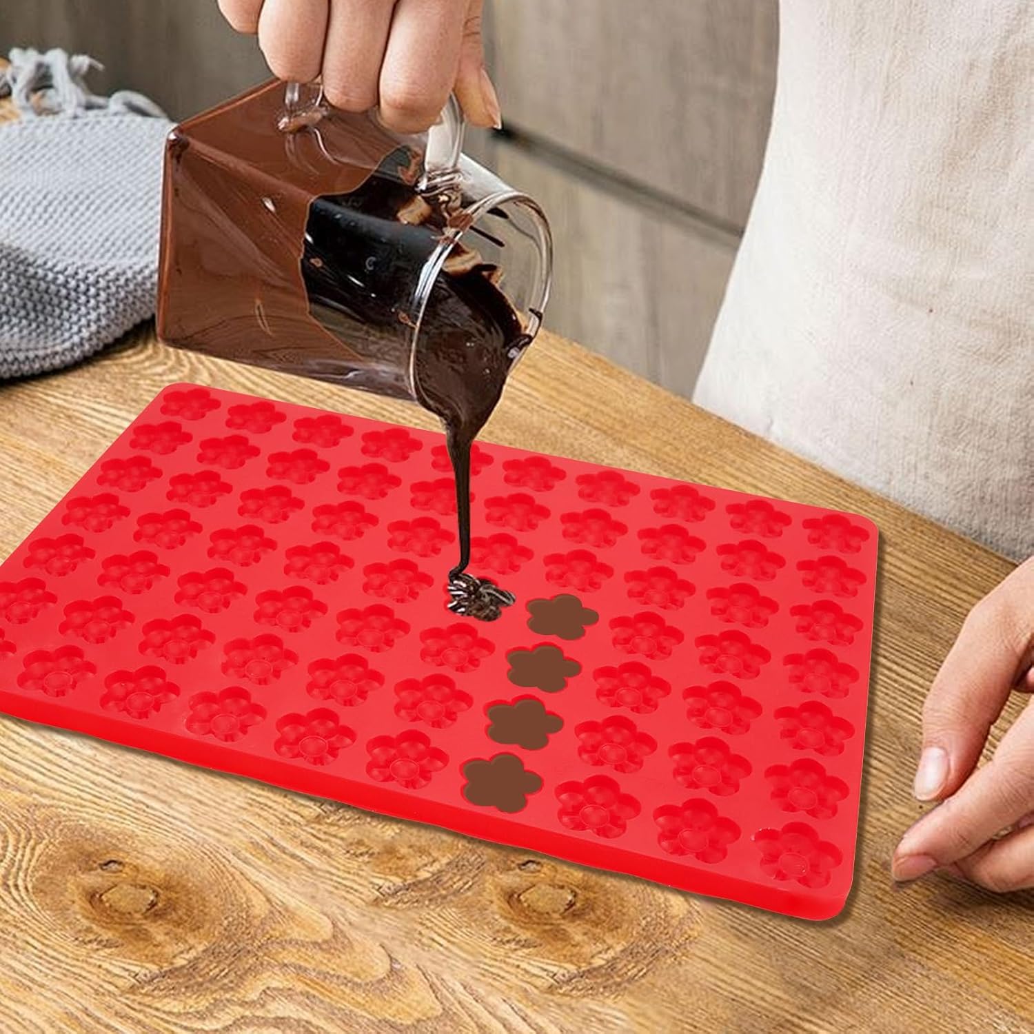 - Lovely Design: Pretty mold with a novel plum blossom shape. Each cavity is 1" x 1". The entire mold measures 7.87" x 11.81" x 0.4", fitting a quarter sheet pan. Ideal for making colorful snacks for Children’s Day, Mother’s Day, Valentine's Day, or Christmas.