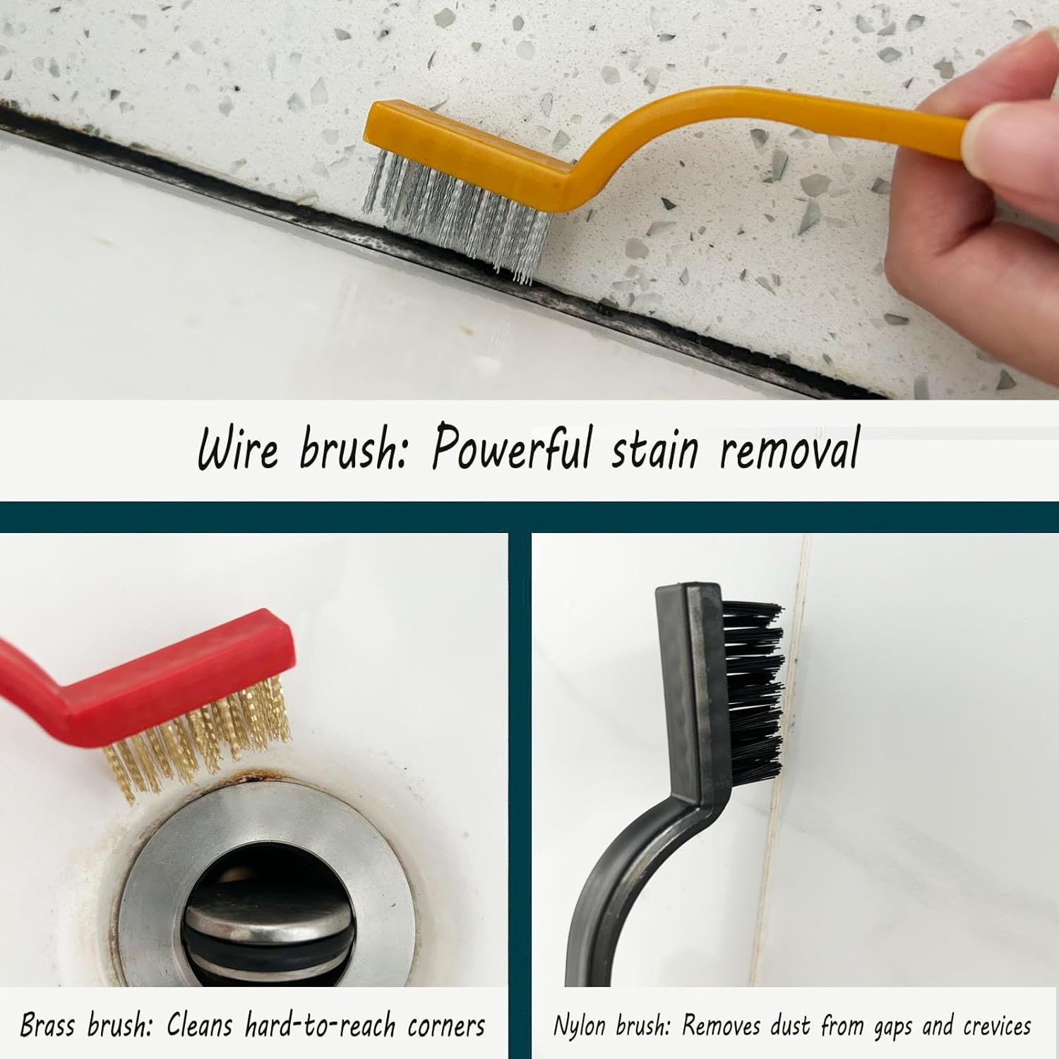 - Multi-Tool System for Every Cleaning Challenge:This 12-piece kit combines specialized tools to conquer dirt in any space:3 Gap Brushes-Ultra-fine bristles lift dust from window tracks, appliance vents, and keyboard keys.Safe on delicate surfaces like stainless steel fridges or glass stovetops.6 Metal Brushes-Use the nylon brushes for dust, brass for polishing, and steel for heavy grime! 3 Scraper-Remove sticker residue, dried paint, or baked-on grease from pots/flat surfaces.Angled design reaches behind faucets, under stove burners, and tight corners