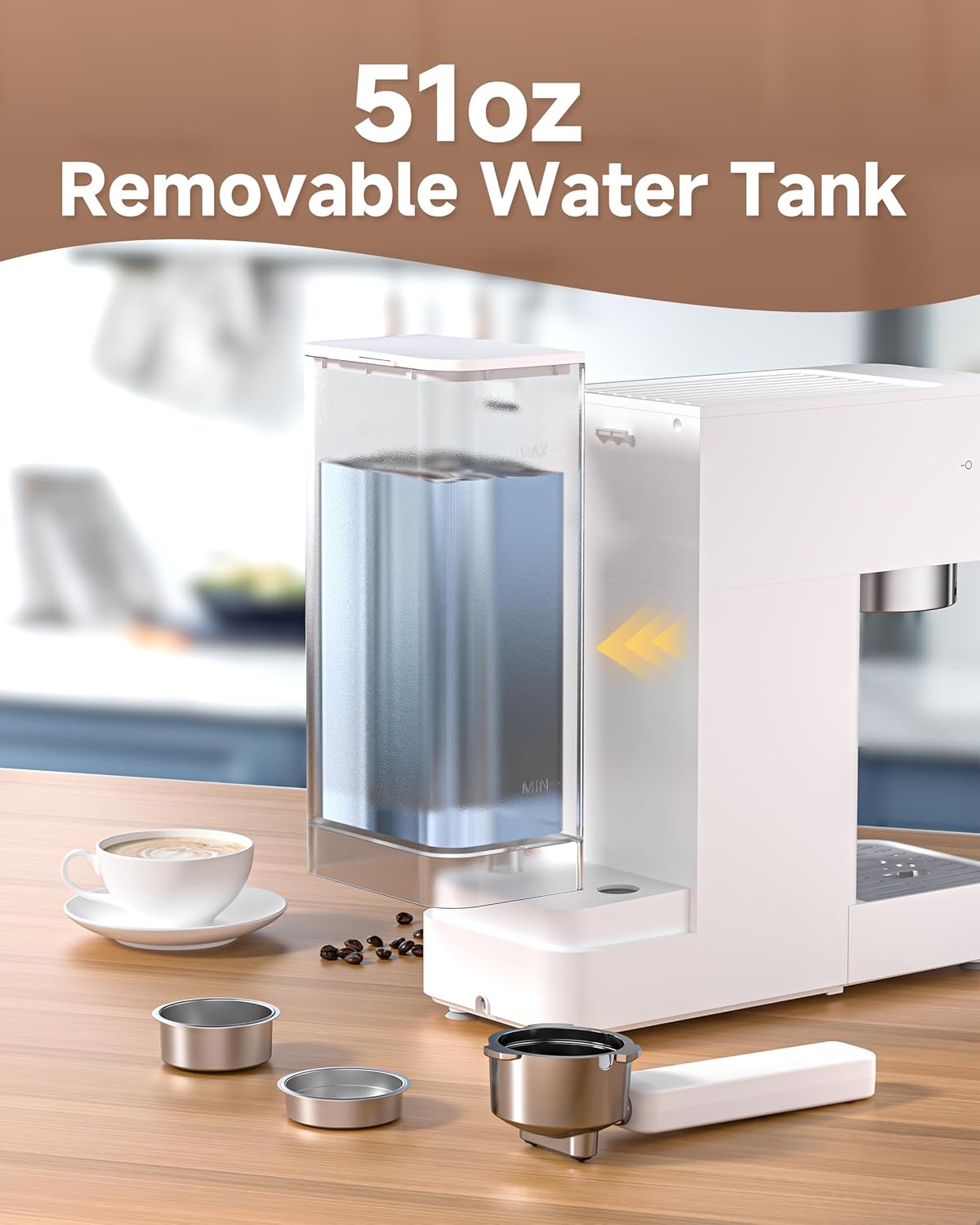 - 0.04 ć” Compact Design & 51oz Removable Water Tank - Only 12x4.7x11.6inch compact size, less than A4 paper size. It's the perfect space-saving solution for small kitchens and offices. The large 51oz removable water tank makes refilling and cleaning effortless