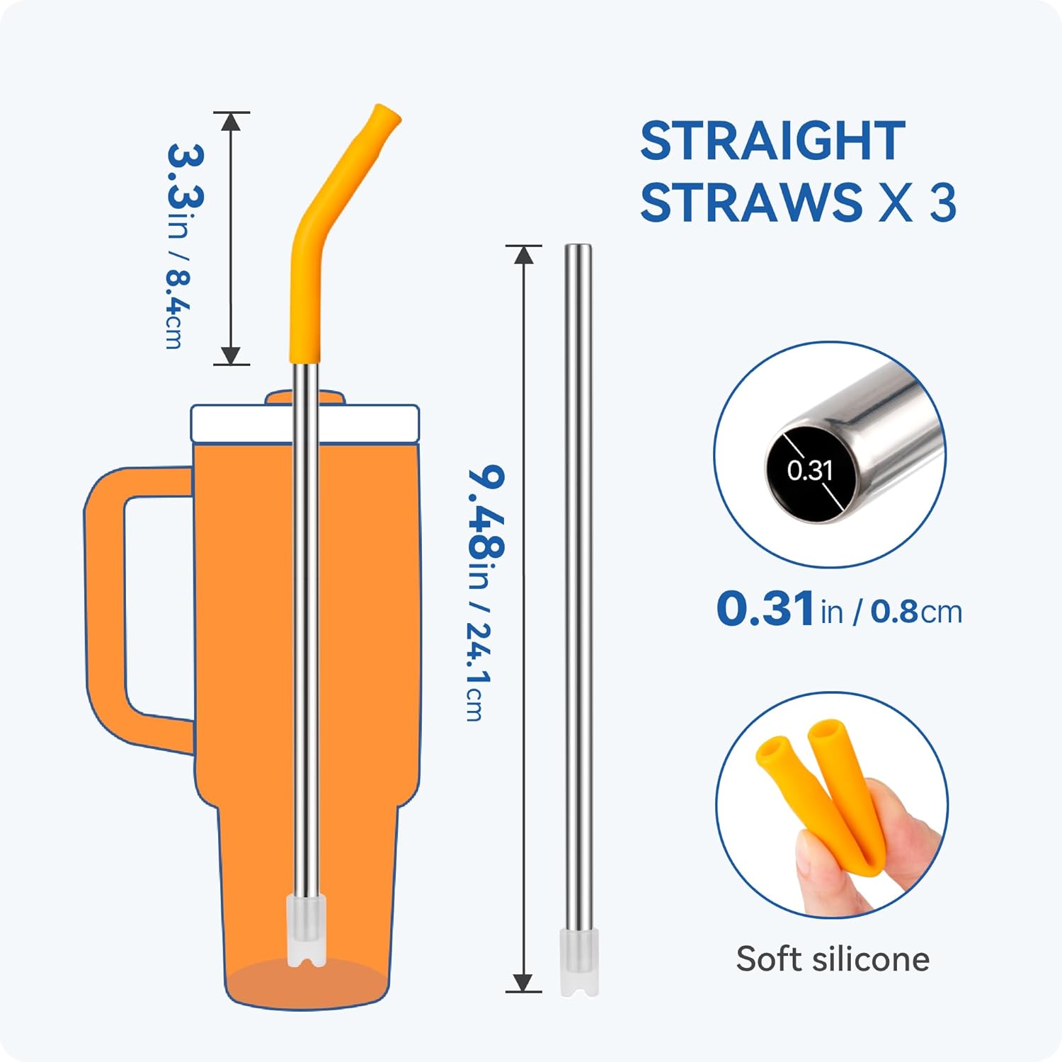 - Silicone Tips: Food-grade silicone tips avoids direct contact between teeth and lips and metal straws. Whether it's cold or hot drinks, it won't burn or freeze lips when drinking, providing protection while sipping,and is soft and comfortable