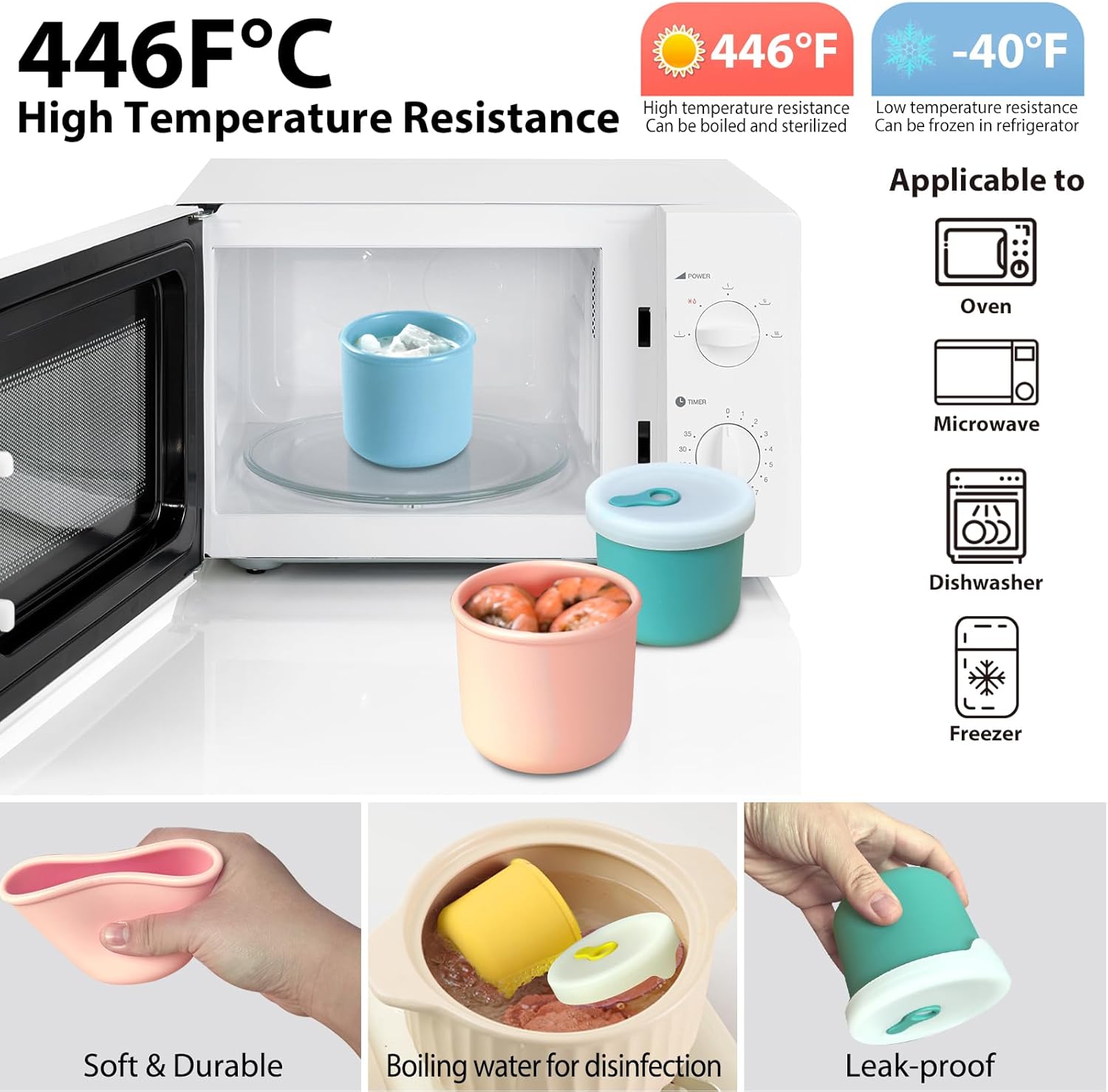 - Food Grade Silicone: These small food storage containers with lids are made of food-grade, BPA free silicone. They are soft, flexible and durable, smooth and reusable. Each come with a snug-fitting silicone lid, ensuring freshness and spill-free storage