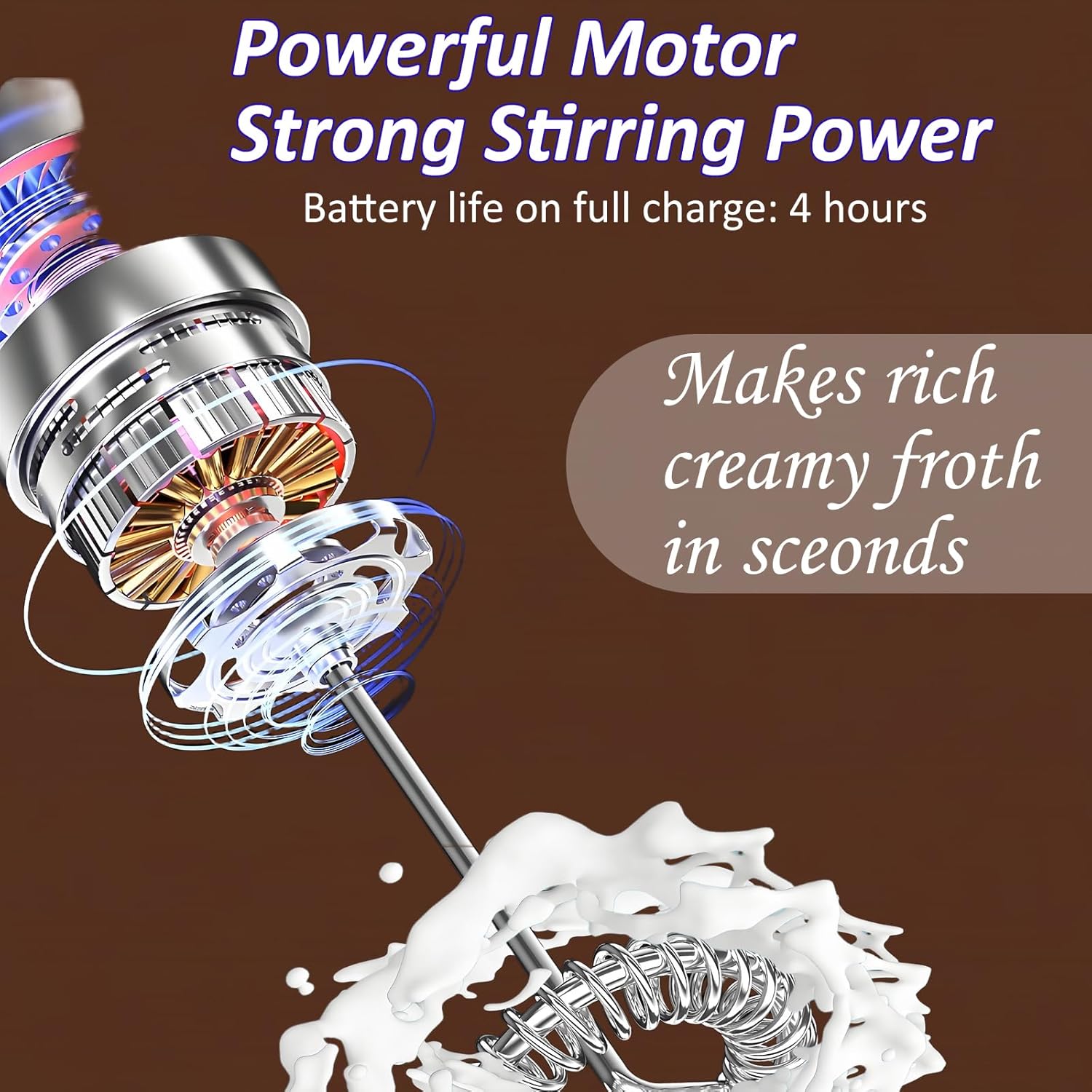 - Month-Long Battery & USB-C Fast Charging: Stop wasting money on batteries! The built-in rechargeable battery lasts up to a month on a single charge (typical home use). Convenient USB-C charging gets you back to frothing quickly – no more downtime