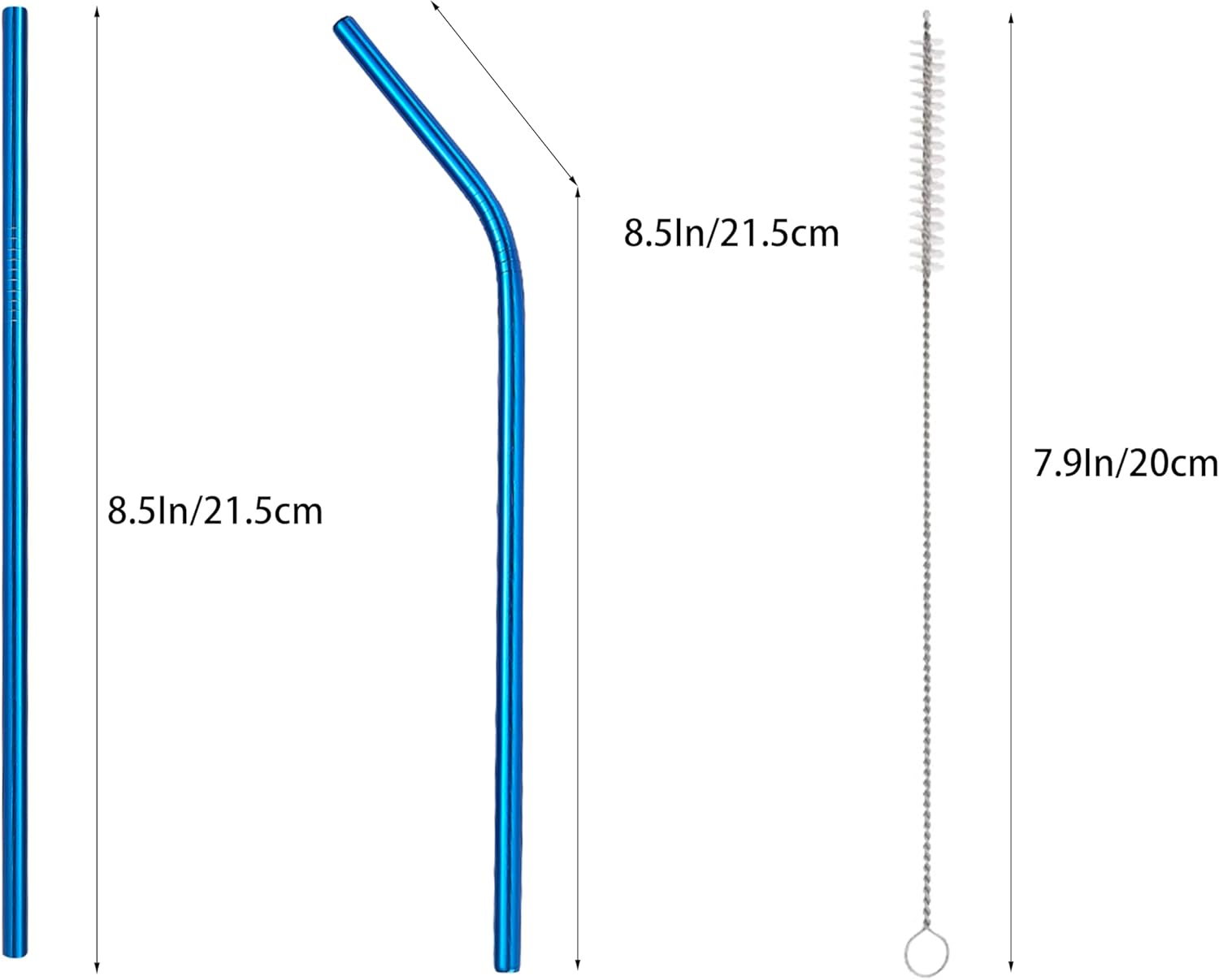 10 Pcs Stainless Steel Straws, Reusable Drinking Straws, 5 Straight + 5 Bent Metal Straws Set With 2 Pcs Cleaning Brushes (Blue, 8.5 Inch)