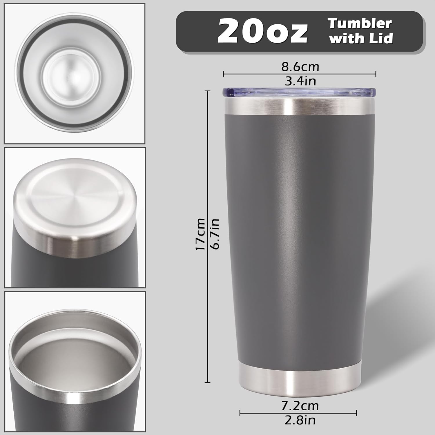 - 【 DOUBLE-WALL VACUUM TUMBLERS 】- Our 20oz tumbler mugs are made of Food Grade 304 18/8 Stainless Steel. The tumblers are with Double-Walled vacuum insulation design, which can keep your on-the-go beverages hot for 3+ hours and cold for 9+ hours. And our tumblers can fit most of the car cup holders. Enjoy your drink for a long time!