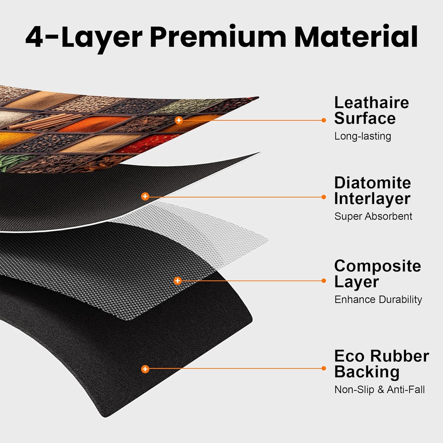 - Premium Coffee Mat - BVBOX 17"x 32" coffee bar mat is made of durable and tear-resistant materials, ensuring long-lasting durability. Its four-layer design features super water absorption, leak-proof and anti-slip performance, providing reliable protection for your countertop.