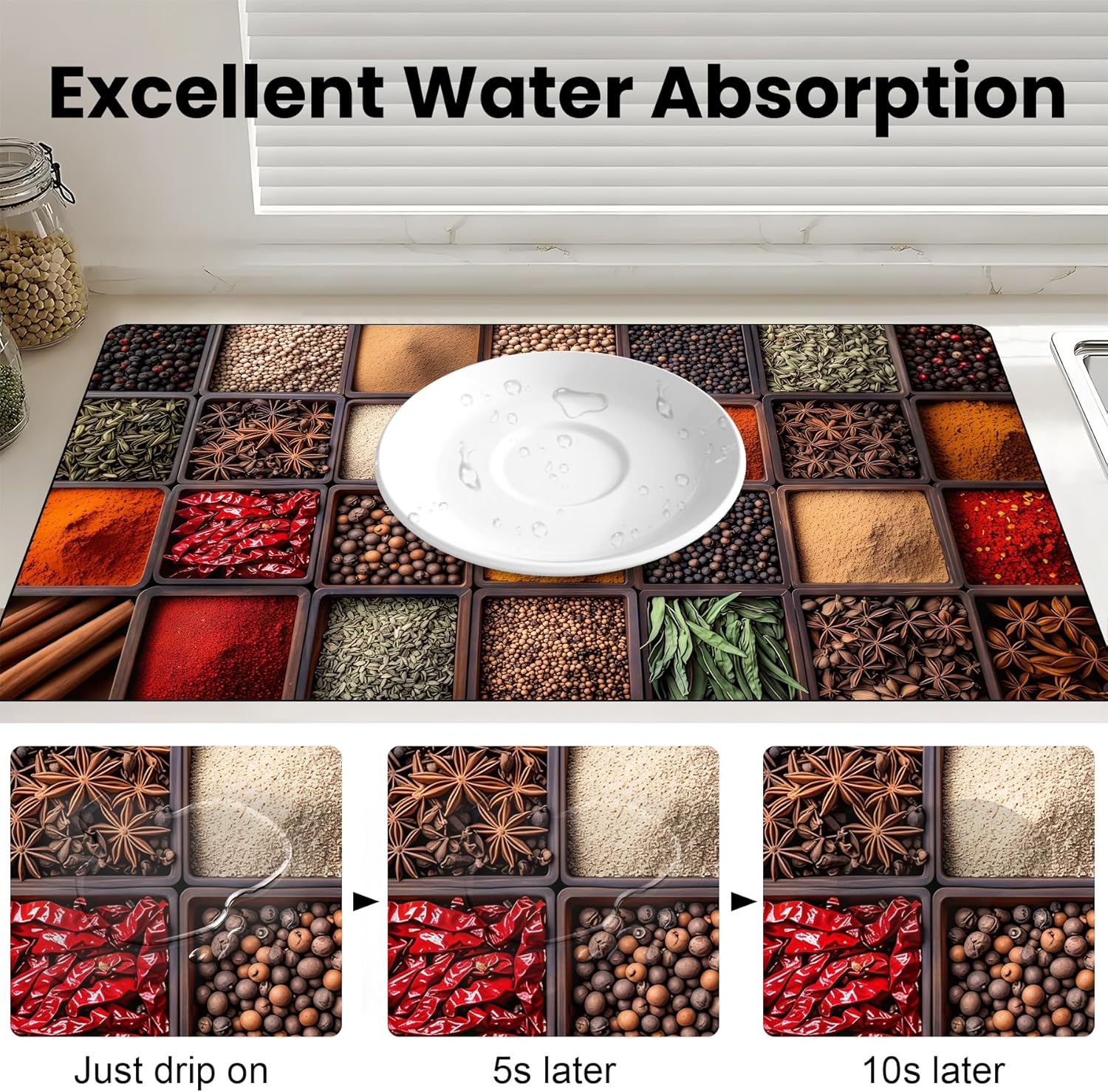 - Ultra Absorbent Mat - This coffee bar mat uses super absorbent diatomite material, which can instantly absorb splash liquid and other stains, effectively hide dark stains, and will not dirty your countertop, keeping the desktop clean and tidy.