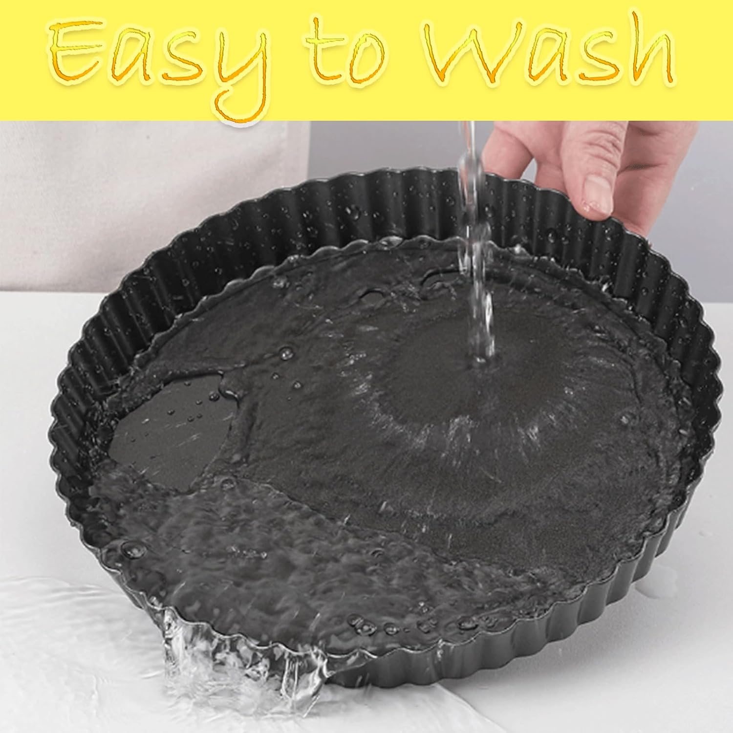 - 【Removable Bottom for Effortless Demolding】 - Featuring a convenient removable false bottom, this tart pan 9 inch with removable bottom allows you to easily release tarts without damaging their shape. The thoughtful design is perfect for cooling, decorating, and serving desserts while maintaining their flawless appearance.