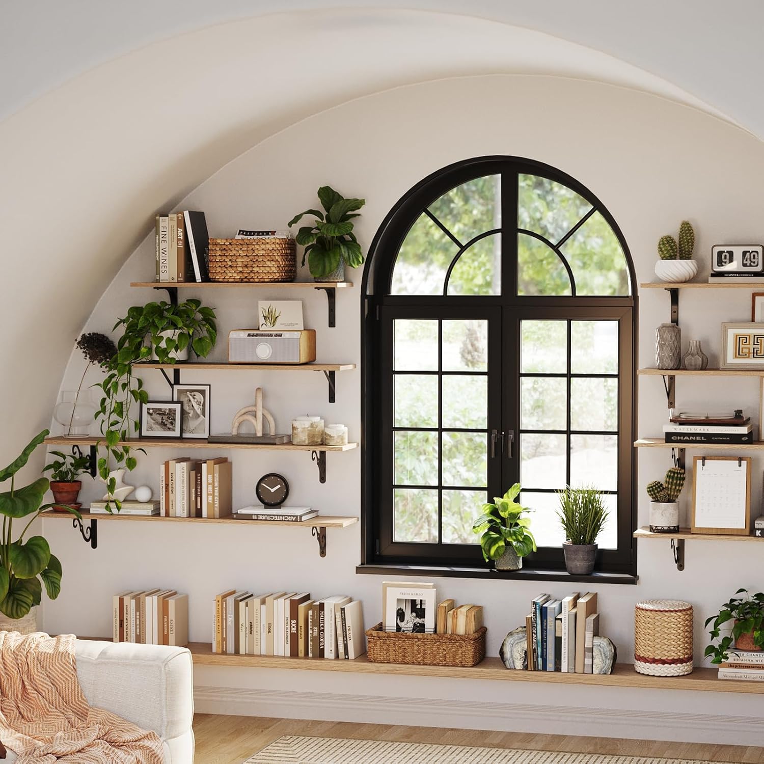 - ăWide ApplicationăExtra long shelves for wall storage is gospel of small family to enjoy the tranquility of home. Large floating shelves allow you to store books, games, decorations, plants, towels, photos, collectibles etc. Even to be an ideal play area for your cats. Create additional storage in living room, bathroom, bedroom, closet, balcony, study, kitchen, laundry, bar area, pantry and office