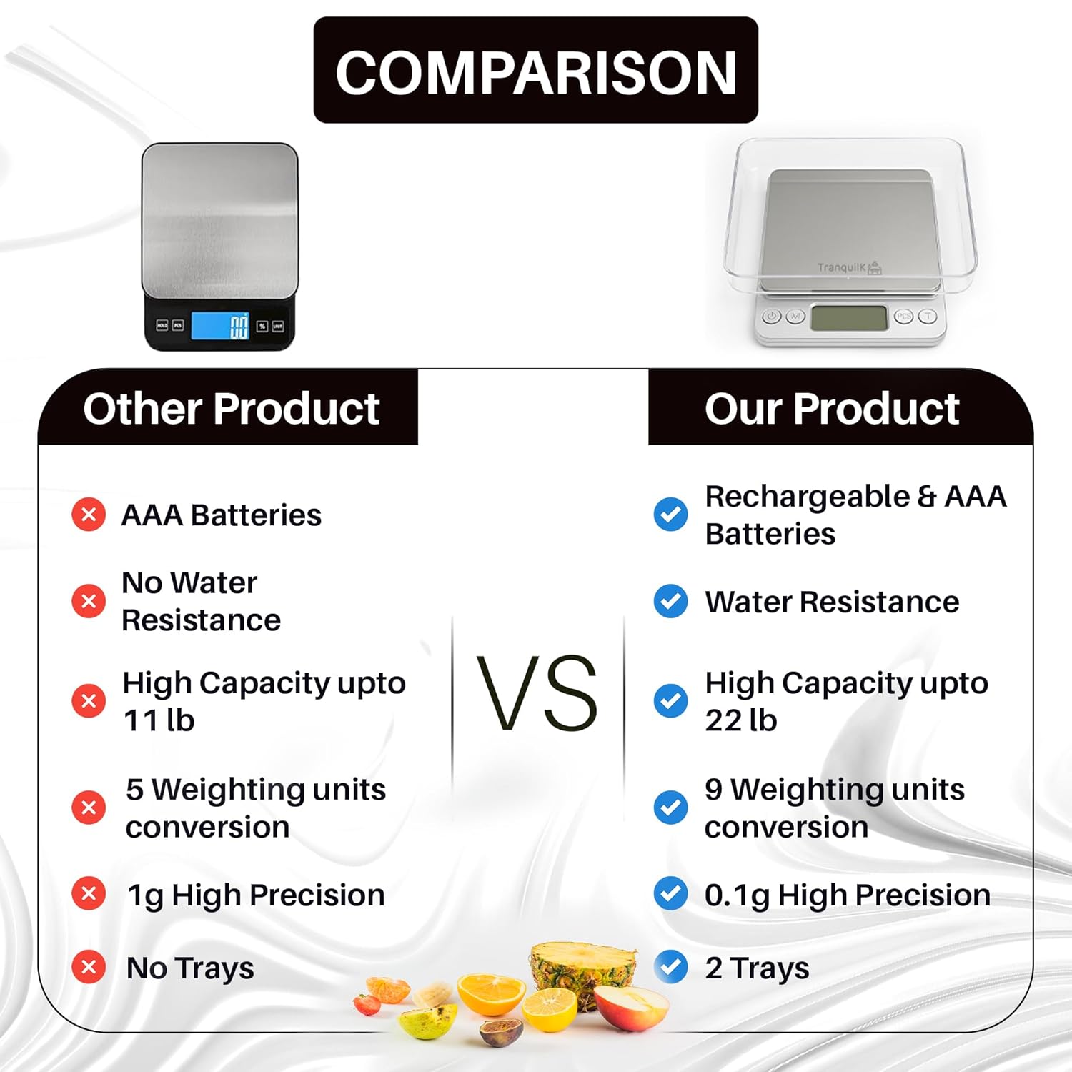 - 〖Convenient & Ready to Use〗This high precision smart scale includes two AAA batteries & rechargeable so you can start weighing instantly. This macro scale is easy to store and portable. It comes with two trays that can work as small containers-auto-off feature of this food scale grams saves power.