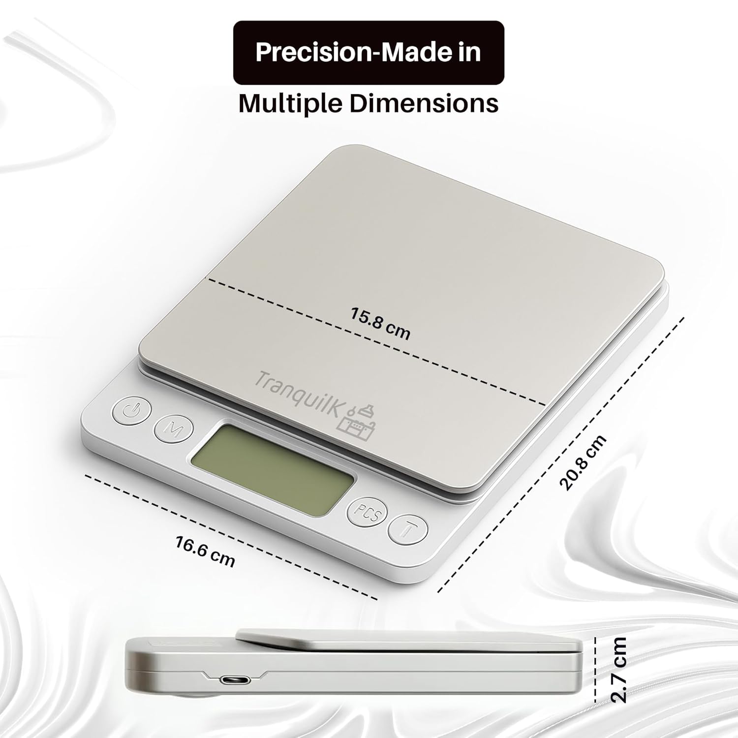 Rechargeable Digital Food Scale for Kitchen with Gram and Ounce – Smart Kitchen Scale for Food Products, Baking, Sourdough Bread Making, Cooking, Weight Loss, Jewelry & Packages (0.1g/5kg)
