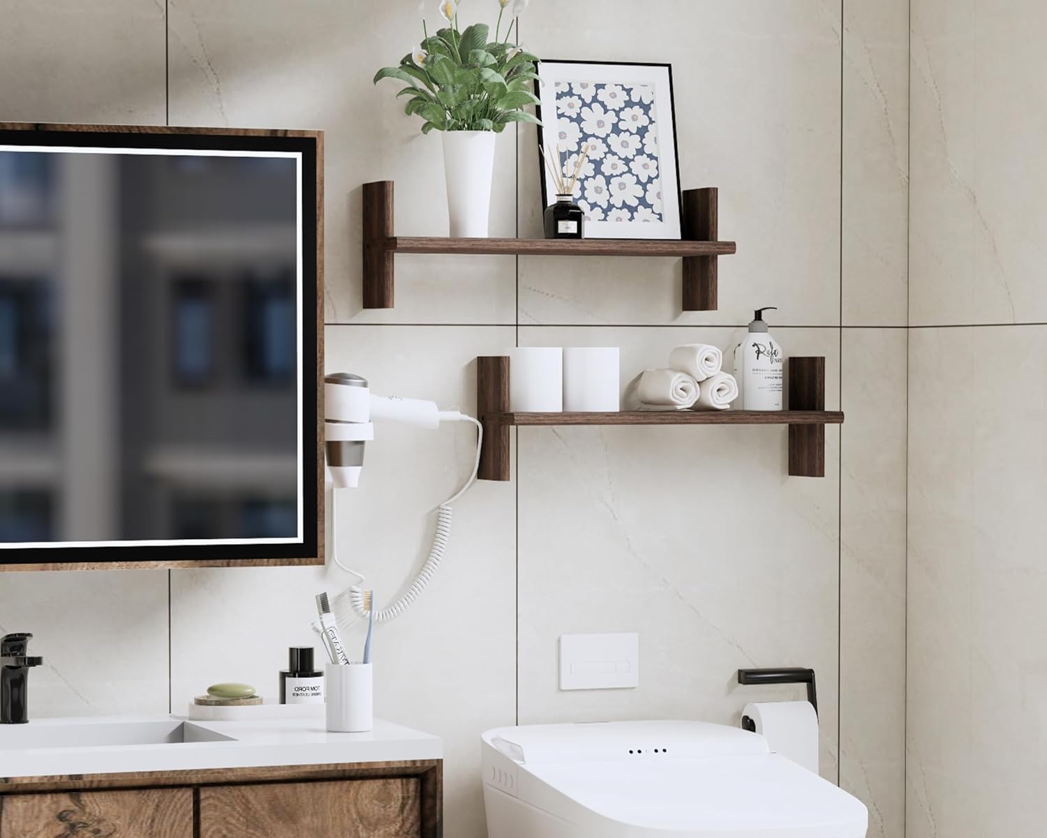 Rustic Floating Shelves – 22.8"x6.7" Solid Wood Bookshelves for Books, Plants, Photos & Decor – Brown Wooden Storage for Bedroom, Living Room, Bathroom, Kitchen