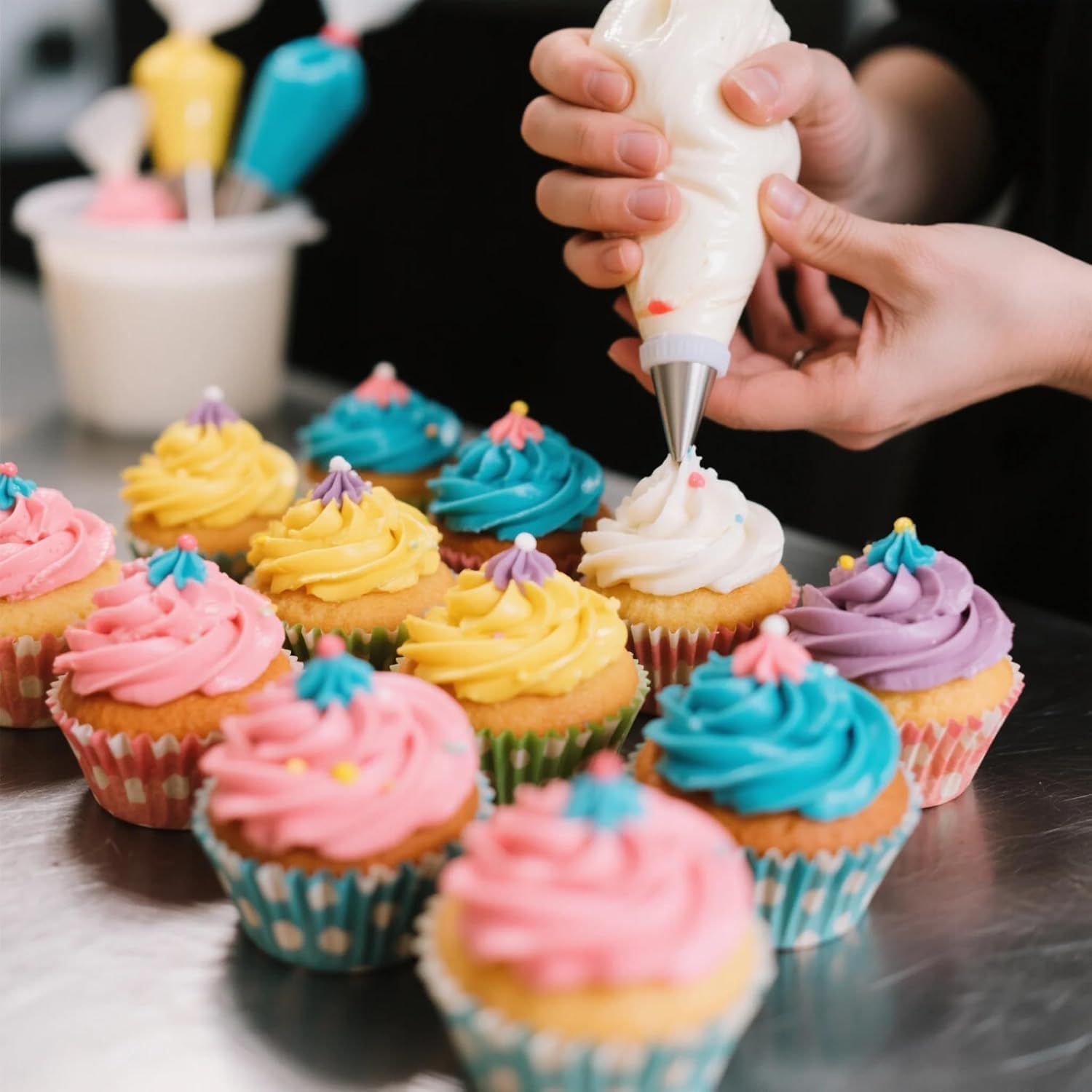- Ergonomic Grip & Precision Control - XXL cupcake frosting bag wiht non-slip grips prevent slippage during prolonged use, while the seamless interior enables flawless buttercream flow for intricate designs and bold swirls. Ideal for ombre effects and detailed work.