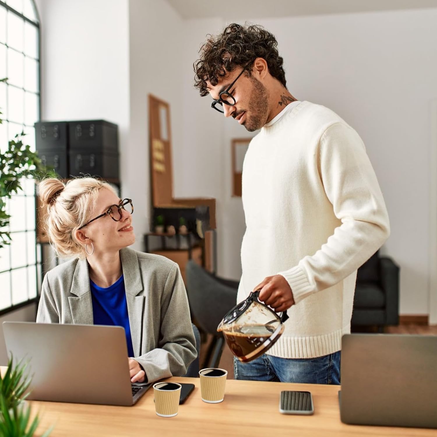 - 【Sturdy and Durable】Our disposable coffee cups are made of high quality corrugated paper, sturdy and durable, not easy to bend and break. The rolled edge design strengthens the edges of the disposable paper cups to prevent unwanted spills and deformation.