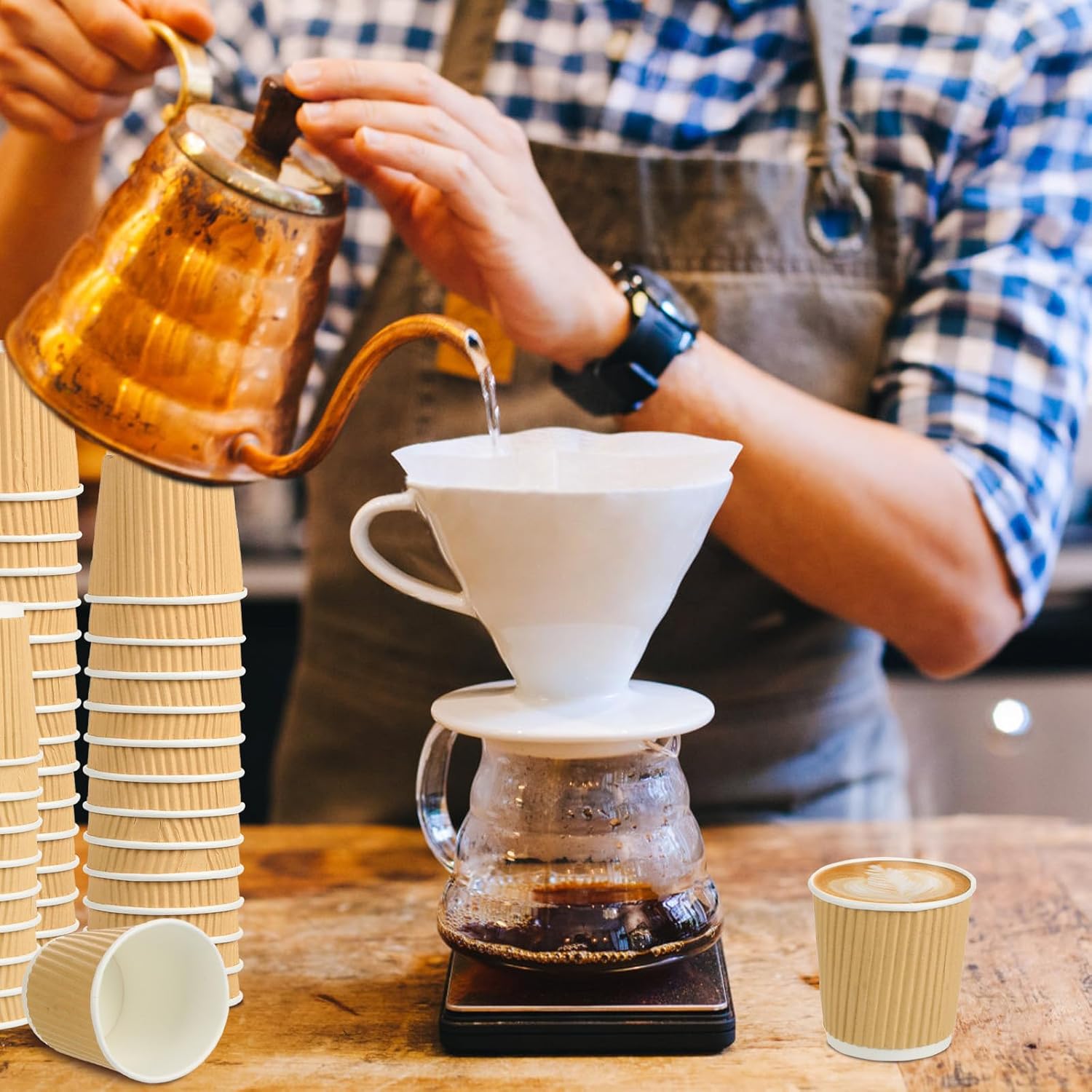 200 Pcs 4oz Paper Espresso Cups Ripple Wall Hot Cups For Coffee Disposable Coffee Cup Paper Hot/Cold Drinking Cups for Party, Picnic, Travel and Events