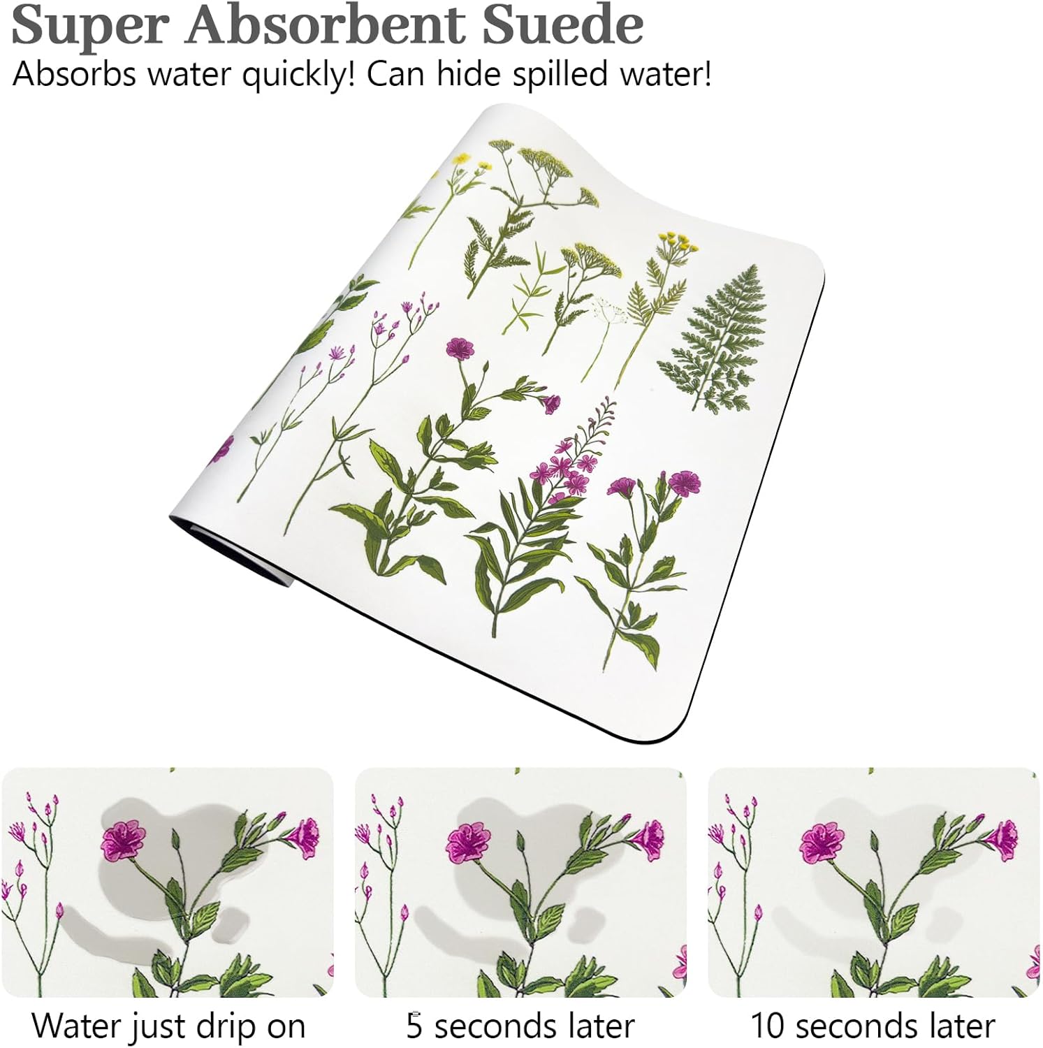 Bloss Kitchen Mat, Coffee Mat 12"x19", Coffee Bar/Maker Mat, Kitchen Counter Mats, Absorbent Hide Stain Rubber Backed Dish Drying Pad(, Flowers and Leaves)
