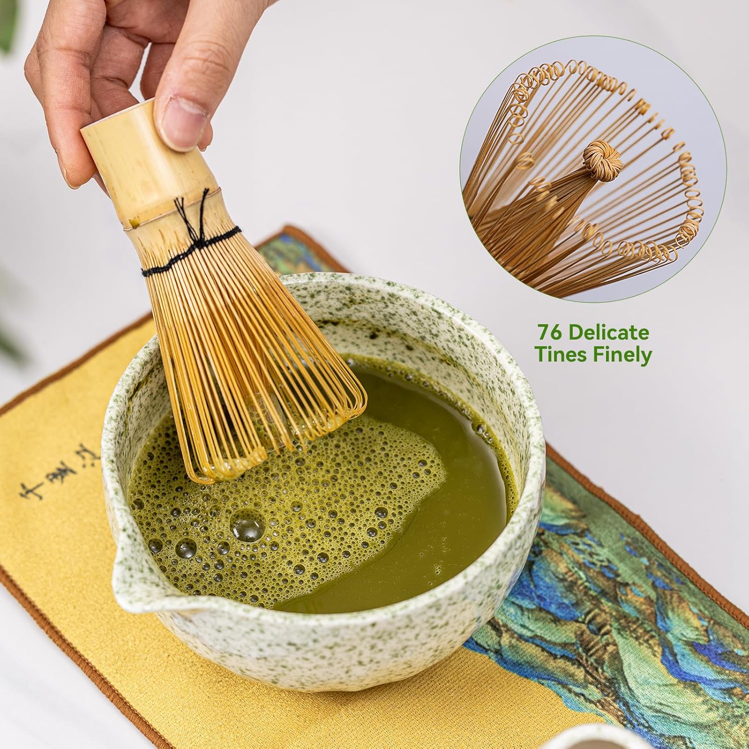 - 【Authentic Taste of Matcha】Our matcha whisk is expertly handcrafted, featuring around 76 delicate tines finely tuned for maximum efficiency. Its precision-engineered design ensures thorough whisking and blending, producing a luxuriously frothy texture for a velvety smooth matcha experience. Savor the artistry of tea with every silky, airy sip.