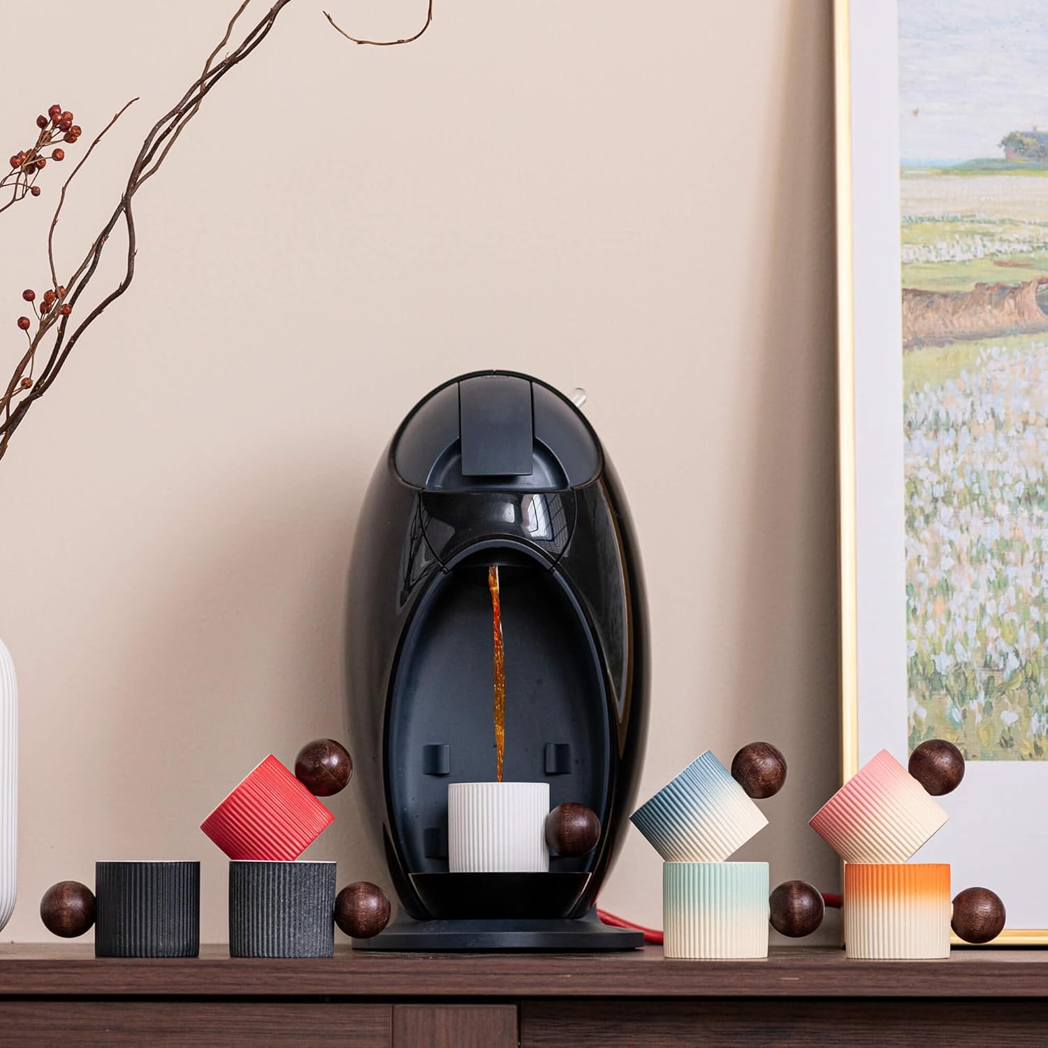 - Elegant vertical stripes give each coffee cup a minimal look while wooden handle provides texture. Use it to serve tea or coffee lovers.