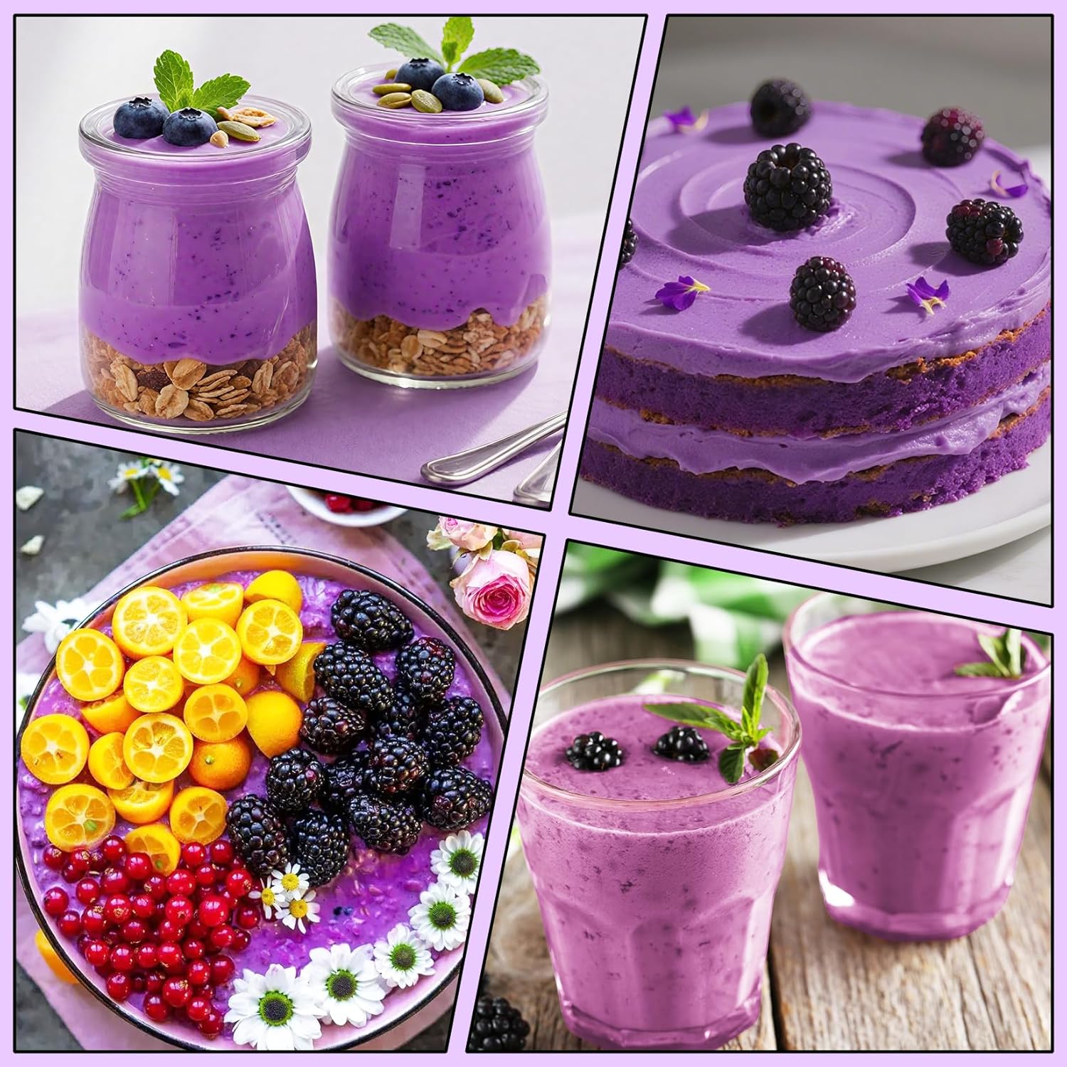 - DELICIOUS AND VERSATILE - Not only a nutritional supplement, it can also be used as a natural food coloring: add it to oatmeal bowls to add fruity flavor; mix it into yogurt to make desserts; combine it with flour to make purple-style cakes and cookies; and add it to fruits and ice cubes to make black raspberry-flavored smoothies.