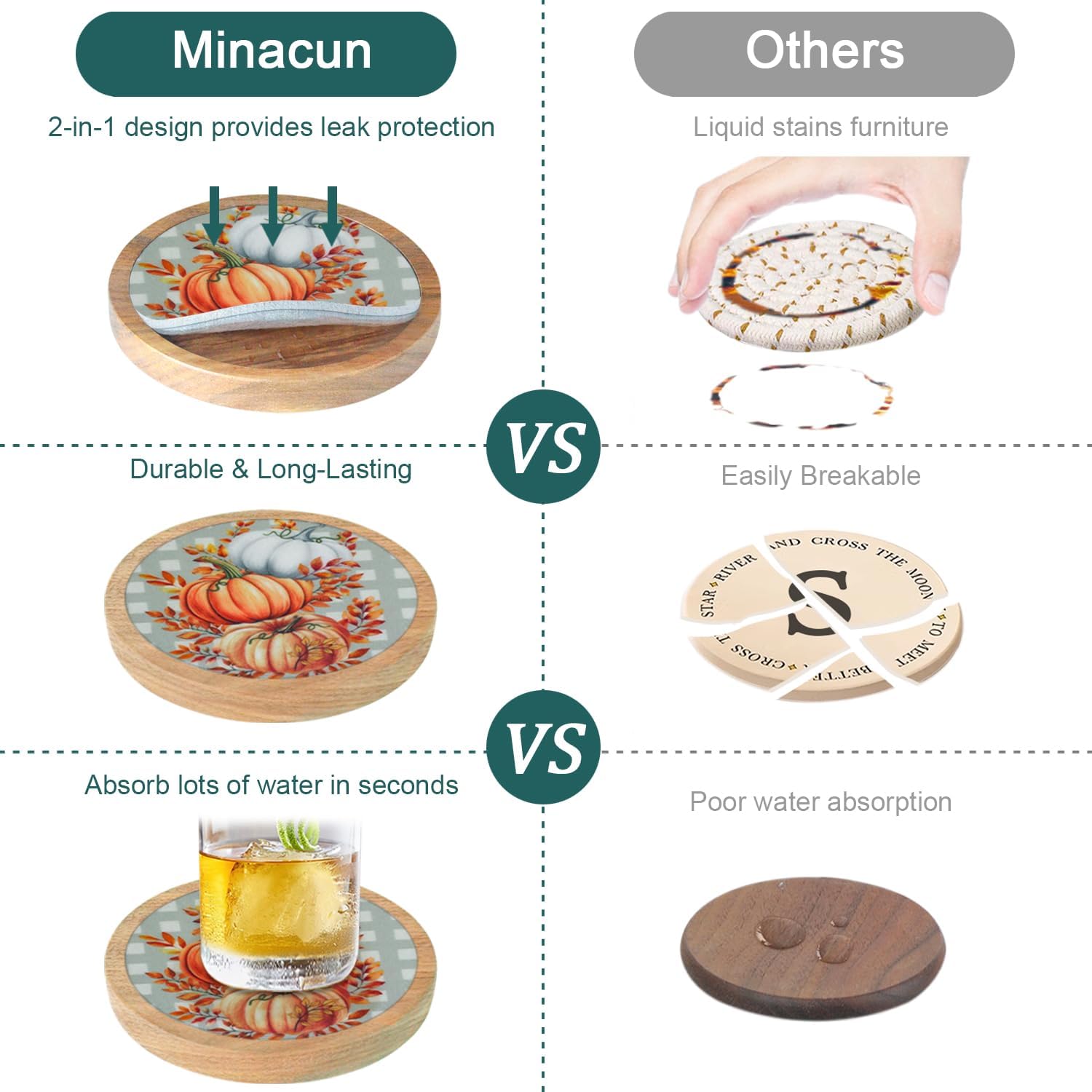 Fall Coasters Set of 6, Pumpkins Coaster, Minacun Absorbent Coasters with Holder Halloween Thanksgiving Themed Party Decoration 4.3 Inch
