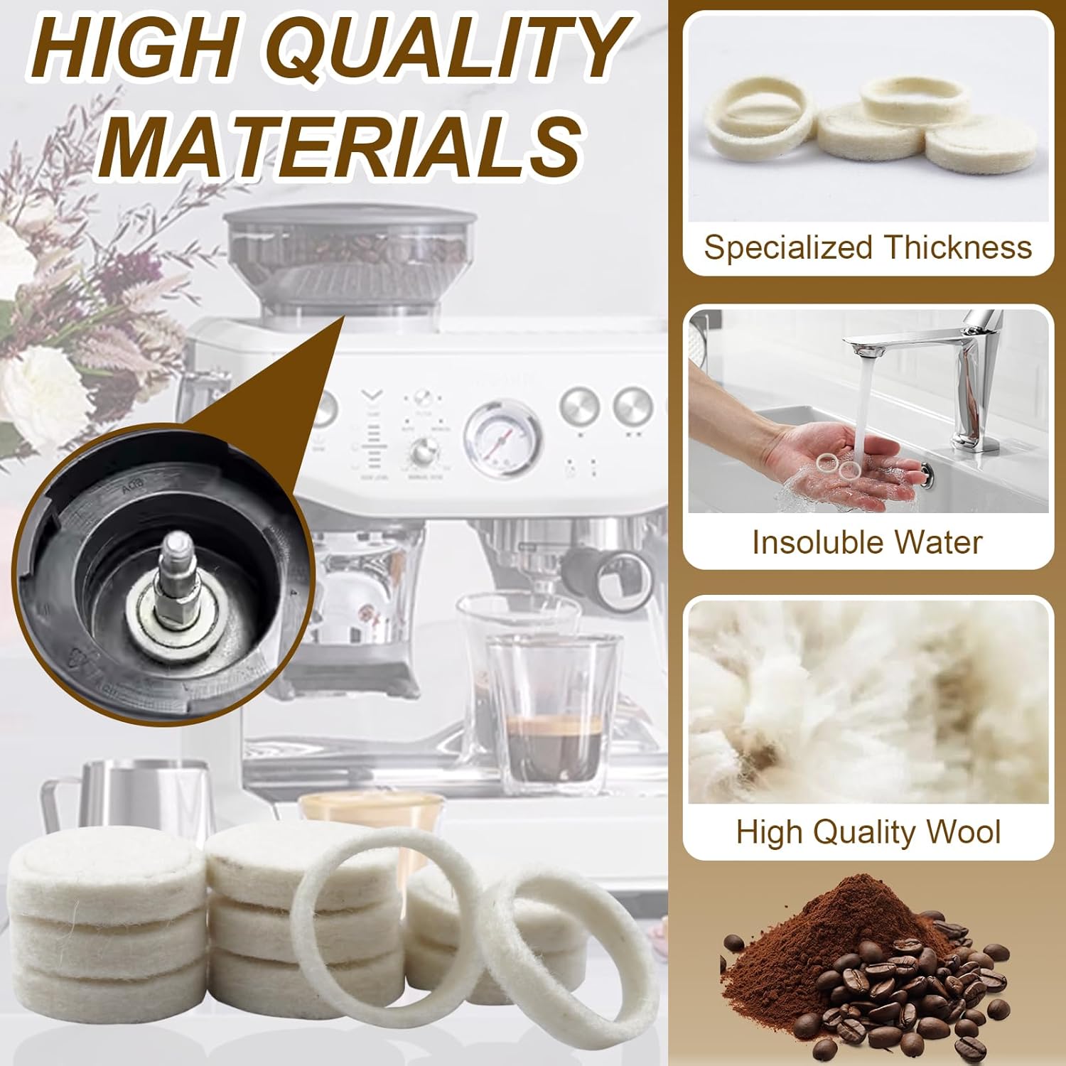 10Pcs Felt Washer Replacement for Breville Espresso Machine Grinders, Compatible with BES870, BES878, BES880, BES980, BES990, BCG600, BCG820, Breville Espresso Machine Parts