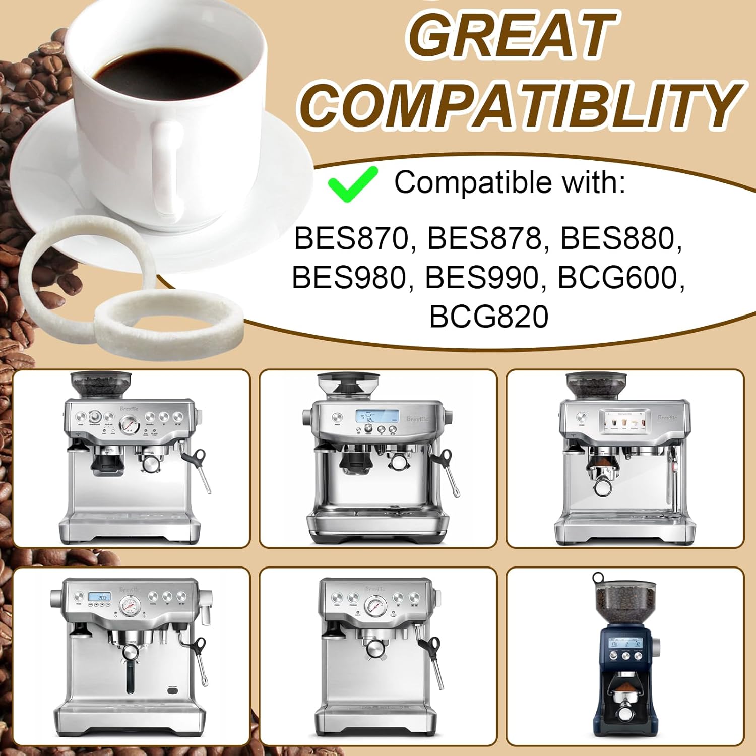 - Perfect Fit for YOUR Breville: Don't guess! Specifically designed to replace worn washers in Barista Express/Express Impress, Barista Touch, Barista Pro, Oracle/Oracle Touch, and Smart Grinder Pro models. Confidently fits BES870, BES878, BES880, BES980, BES990, BCG600, BCG820.