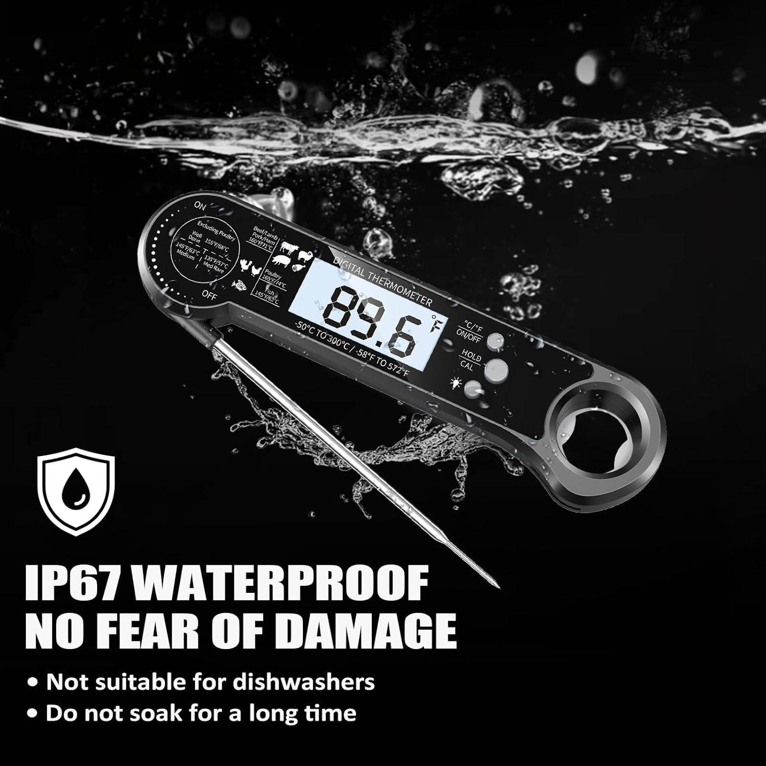 - 🍡【EASY TO USE】Large LCD screen with backlight displays clear temperature readings and includes preset temperature guides for different meat types